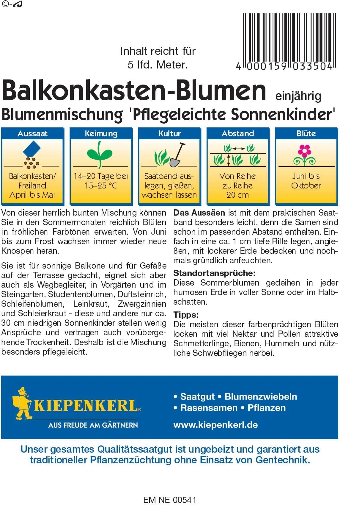 Von dieser herrlich bunten Mischung in fröhlichen gelb-weißen Farben können Sie in den Sommermonaten reichlich Blüten erwarten – von Juni bis zum Frost. Monatelang wachsen immer wieder neue Knospen heran. Sie ist für sonnige Balkone gedacht, für Gefäße auf der Terrasse, als Wegbegleiter, in Vorgärten und im Steingarten. Sammetblumen, Studentenblumen, Duftsteinrich, Schleifenblumen, Leinkraut, Zwergzinnien, Schleierkraut und andere – diese nur 30 cm niedrigen Sonnenkinder stellen wenig Ansprüche und sind an schwierige Bedingungen gewöhnt. Deshalb ist die Mischung besonders pflegeleicht.
