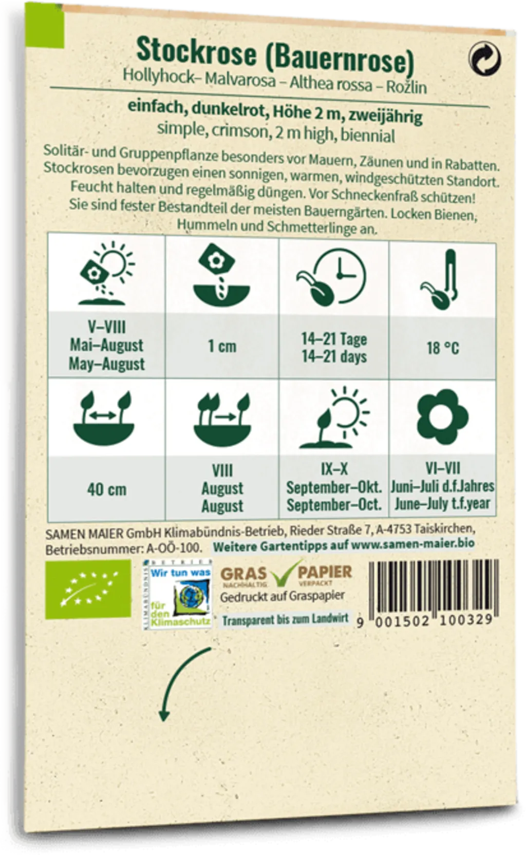 | Aussaattermin: | Mai, Juni, Juli, August |