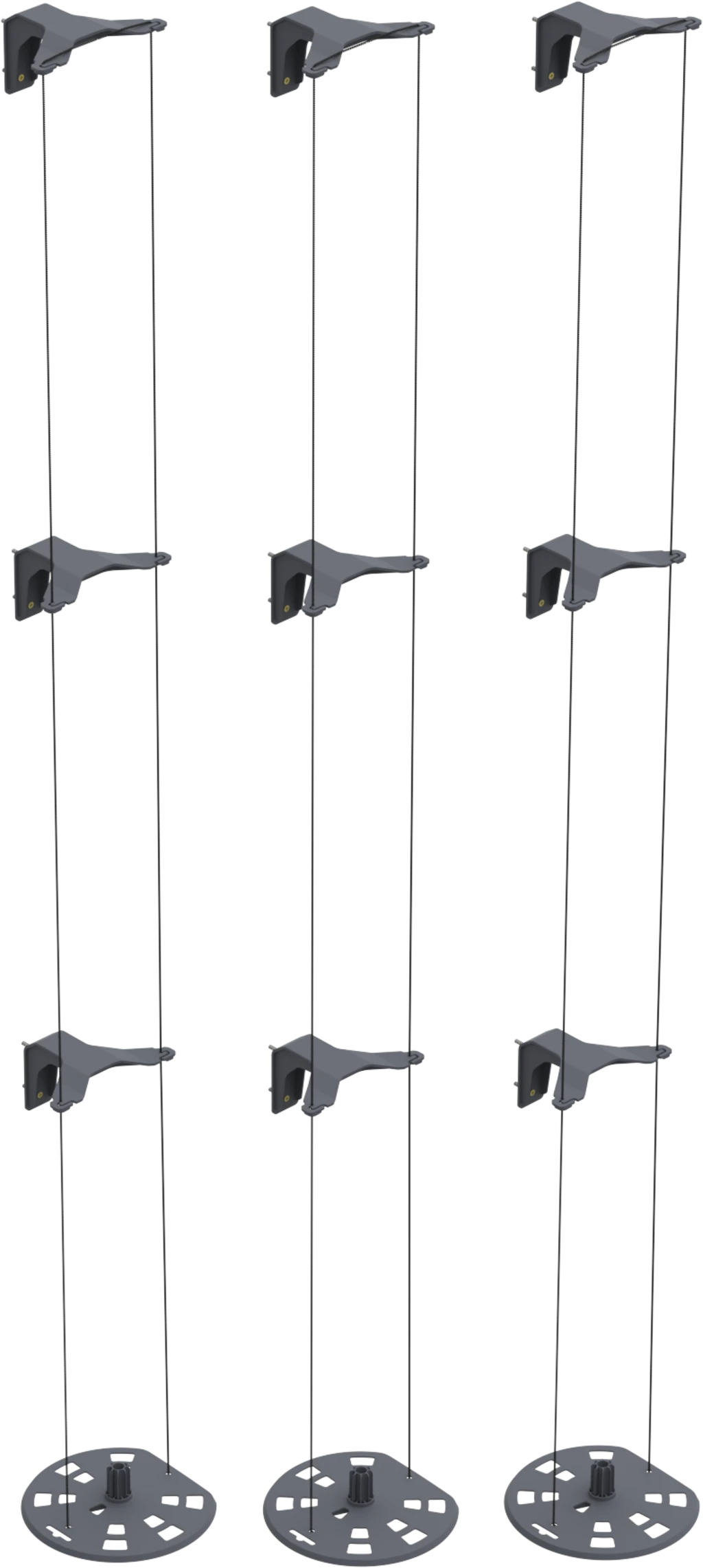 - Lieferumfang: 3 Standfüße, 9 Wandhaken, 3 x 4 m Schnur