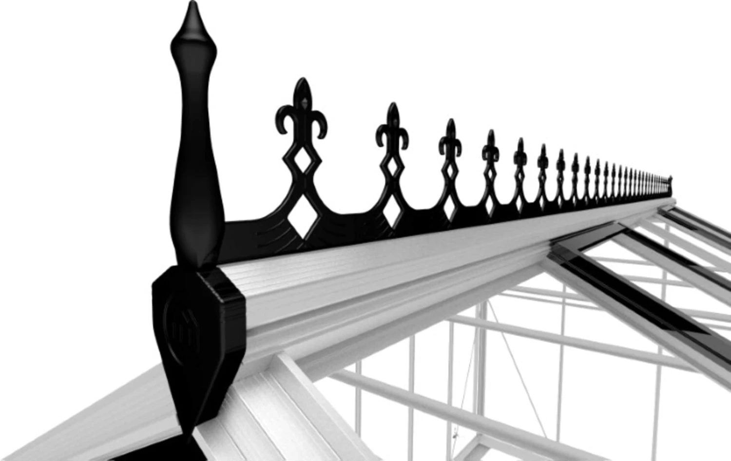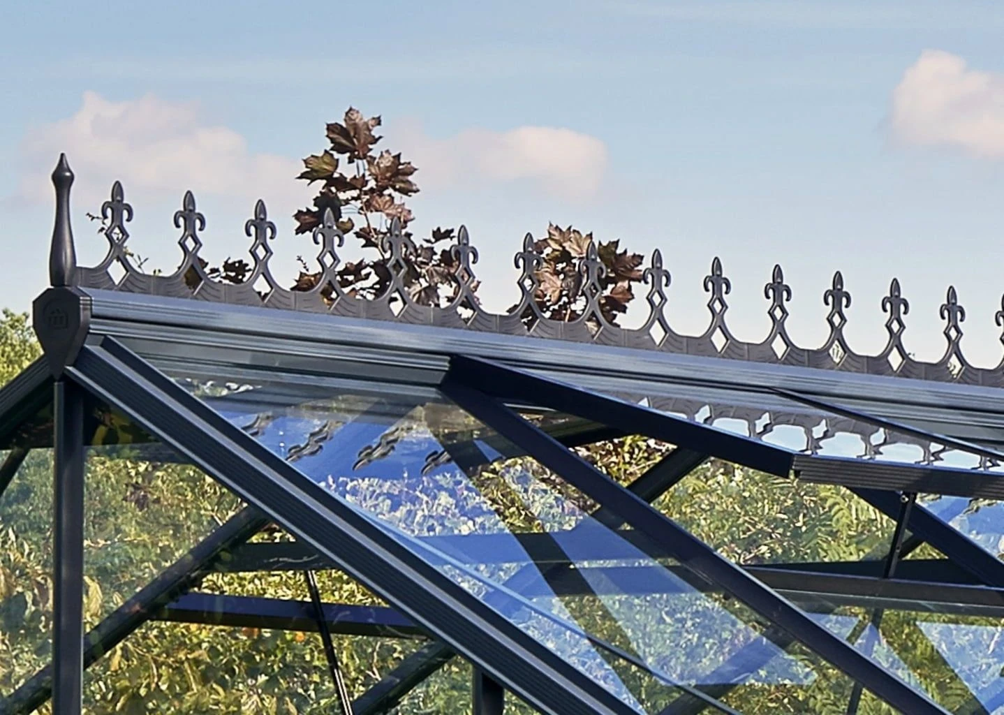 Die Dachfirstverzierung verleiht deinem Gewächshaus nicht nur einen klassischen Look, sondern hält Vögel gleichzeitig davon ab, sich am Dach niederzulassen.