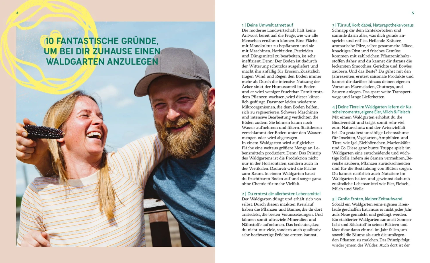 Wie wäre es mit einem Waldgarten? In diesem Buch zeigen dir die Autoren Sandra und Michael Skala, wie du in sieben Schichten zu deinem eigenen Waldgarten kommst und sogar auf dem Balkon deinen eigenen Food Forest anlegen kannst. Dabei arbeitest du mit der Natur zusammen, sodass du nicht nur deine eigene Ruheoase gestalten, sondern auch ganz im Einklang mit dem Ökosystem frisches Obst, Gemüse und Kräuter ernten und zudem ein kleines Nützlingsparadies schaffen kannst. So legst du schon heute den Grundstein für eine lebenswerte Zukunft.