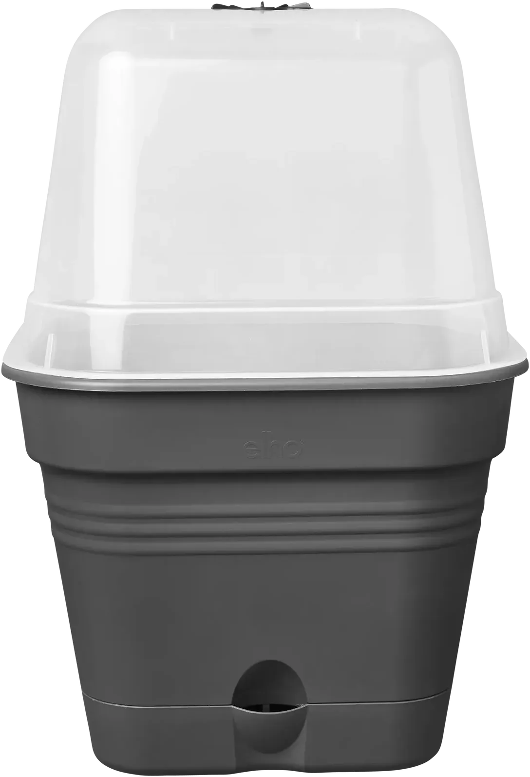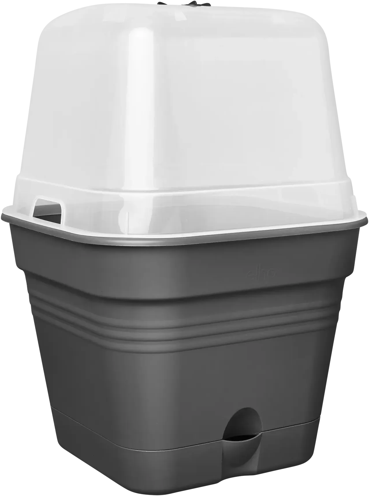 Mit diesem quadratischen Anzuchttopf aus recyceltem Kunststoff gelingt die Anzucht von Obst-, Gemüse- und Kräuterpflanzen ganz einfach, denn er bietet zarten Pflänzchen die optimalen Wachstumsbedingung. Dank integriertem Wasserreservoir haben deine Pflanzen immer ausreichend Wasser zur Verfügung und du musst dir nicht dauernd Gedanken ums Gießen machen. Der inkludierte Anzuchtkasten schützt deine Pflanzen vor direkter Sonneneinstrahlung sowie Insekten und Vögeln schützt und zudem für ein optimales Wachstumsklima sorgt. So kannst du dich schon bald über kräftige selbst gezogene Pflanzen freuen.