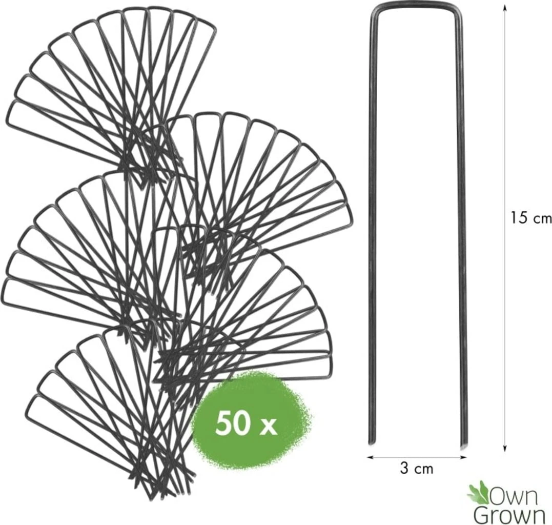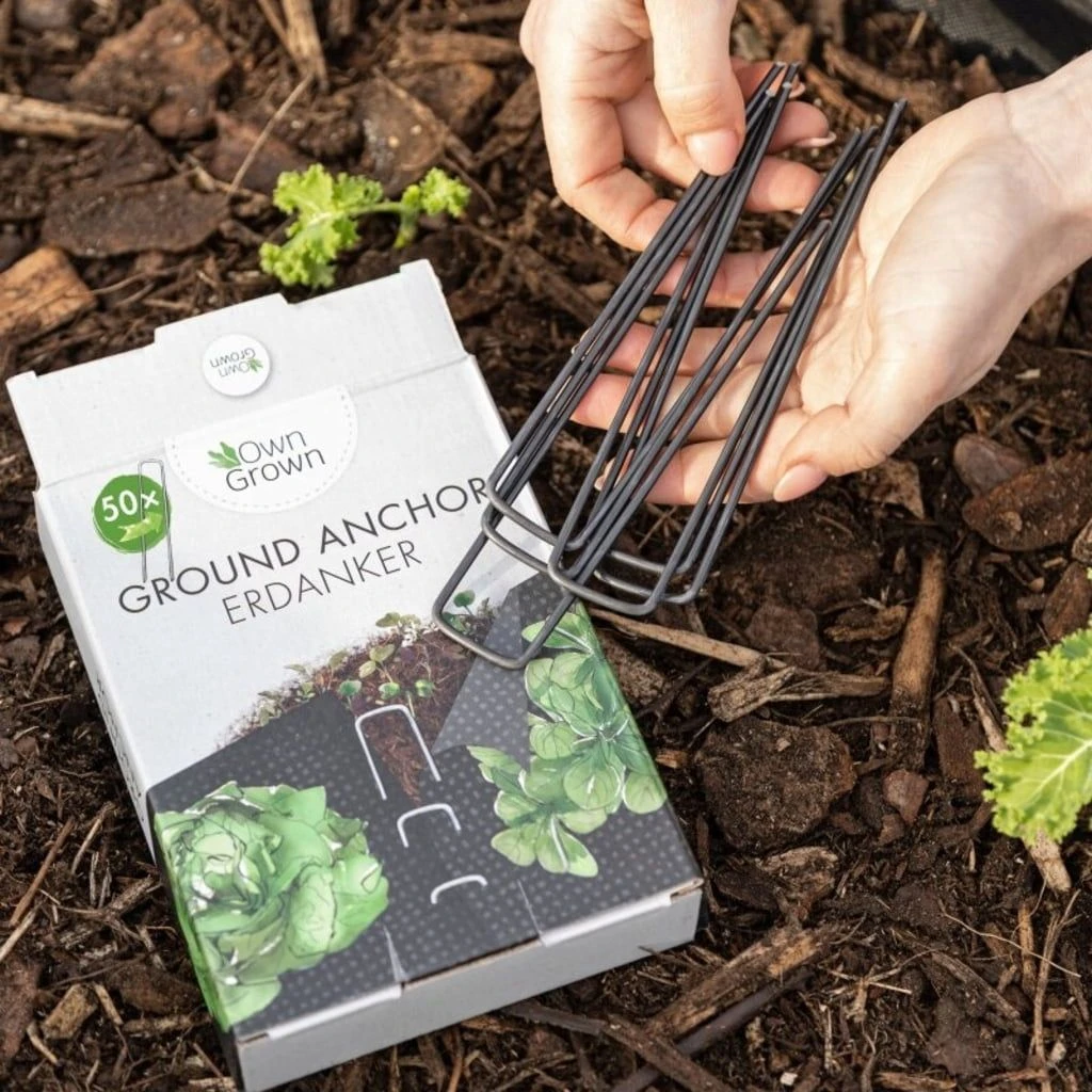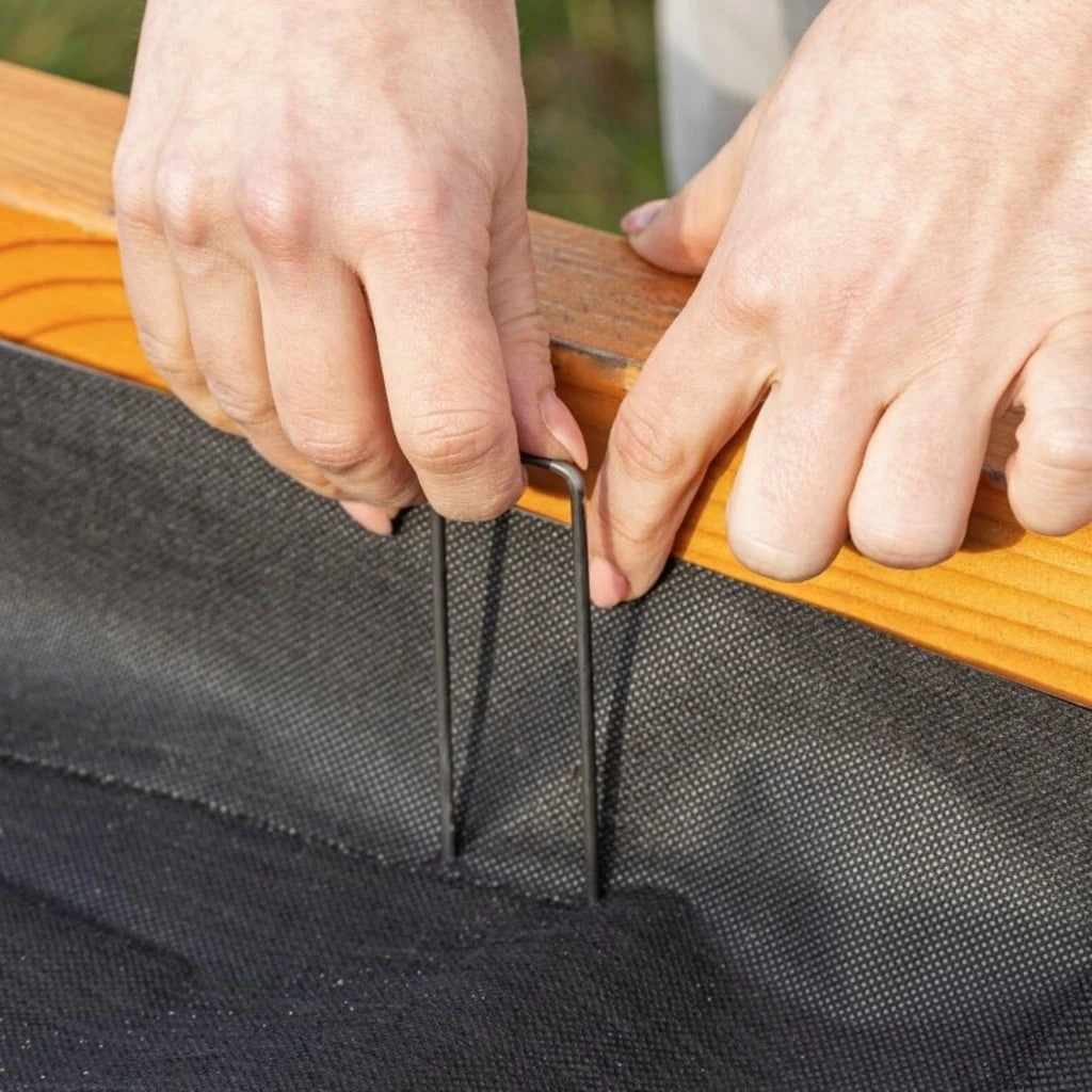 Diese robusten Erdanker aus gehärtetem Stahl ermöglichen das sichere verankern von Gartenvlies im Boden.