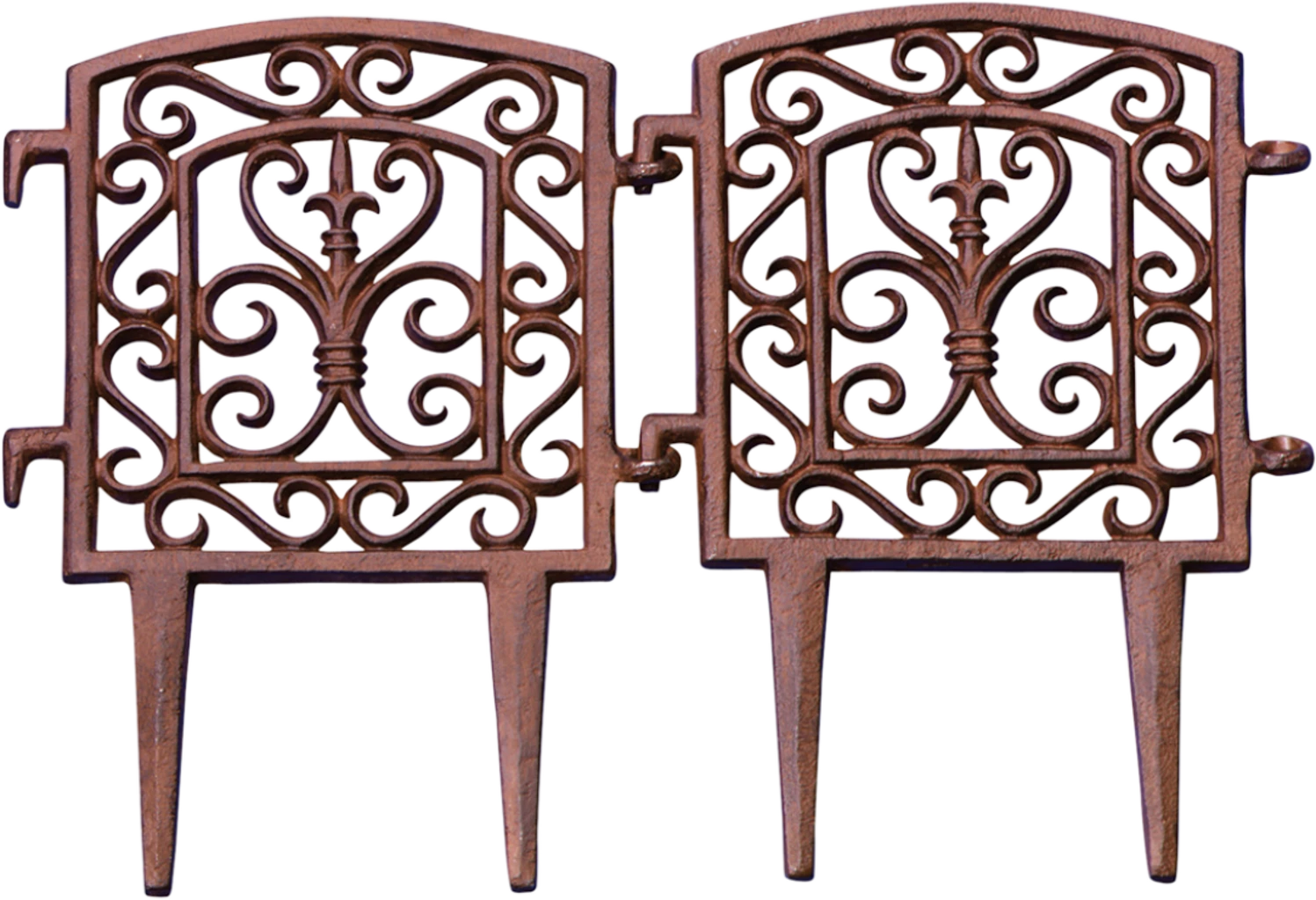 Mit diesem kunstvollen Beetzaun aus robustem Gusseisen sorgst du für klare Bereiche in deinem Garten. Gartenwege und Beete lassen sich dadurch stilvoll von Rasenflächen abgrenzen. Mit den Haken an den Seiten lassen sich einzelne Elemente wunderbar miteinander kombinieren, was zusätzlich für Stabilität sorgt. Für die Montage den Beetzaun einfach in den Boden drücken – ein Werkzeug ist dafür nicht notwendig.