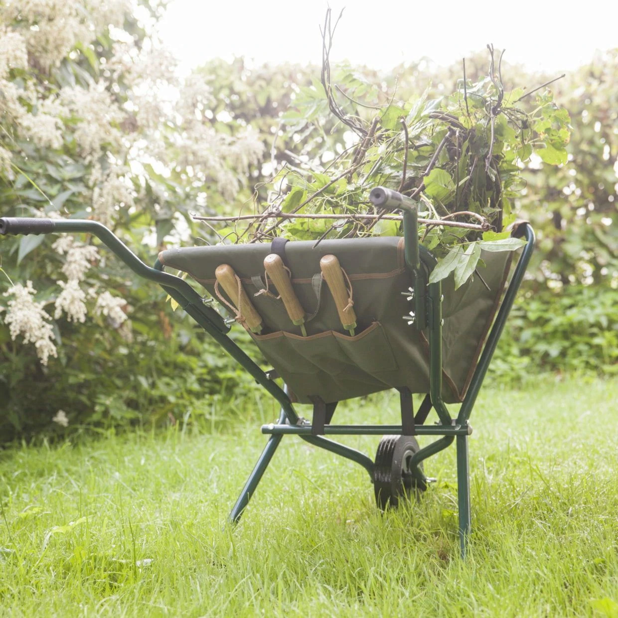Dieser vielseitige Helfer sollte in keinem Garten fehlen! In dieser innovativen Schubkarre finden nicht nur Laub, Äste und Erde Platz, sondern auch Ihre wichtigsten Gartenwerkzeuge. Diese haben Sie dank der praktischen Fächer an der Schubkarre immer griffbereit. Und wenn Sie die Schubkarre nicht mehr benötigen, können Sie sie einfach zusammenfalten und platzsparend verstauen. Komfortabler geht es nicht!