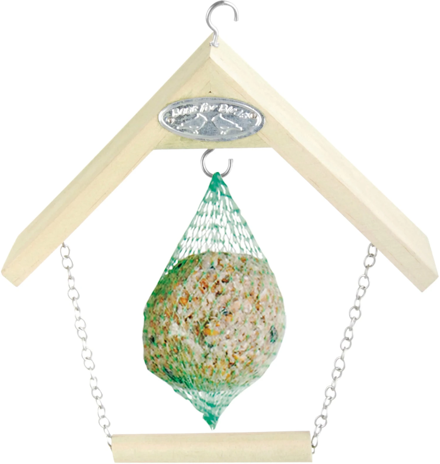 Dekorative hellgrüne Vogelschaukel mit zwei Haken. Einfach im Garten oder auf dem Balkon aufhängen und mit einem Meisenknödel bestücken. Wird ohne Futter geliefert.