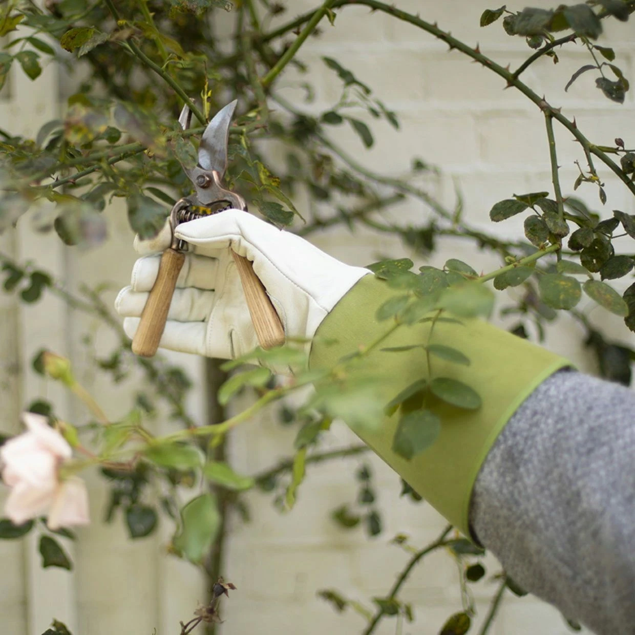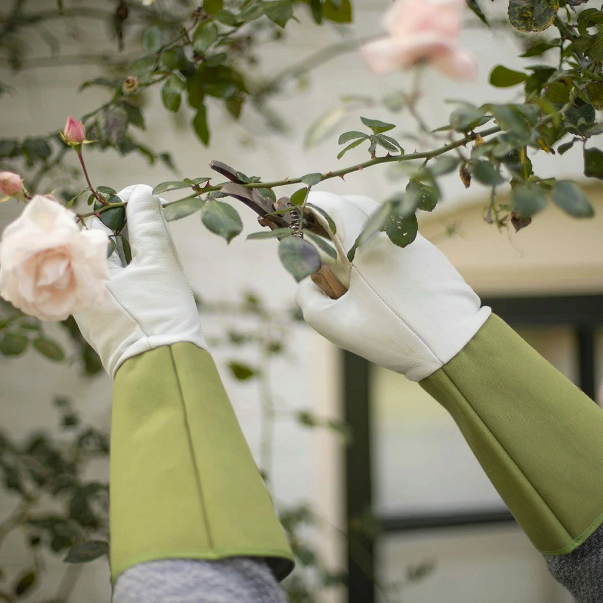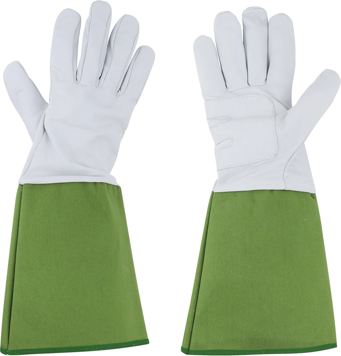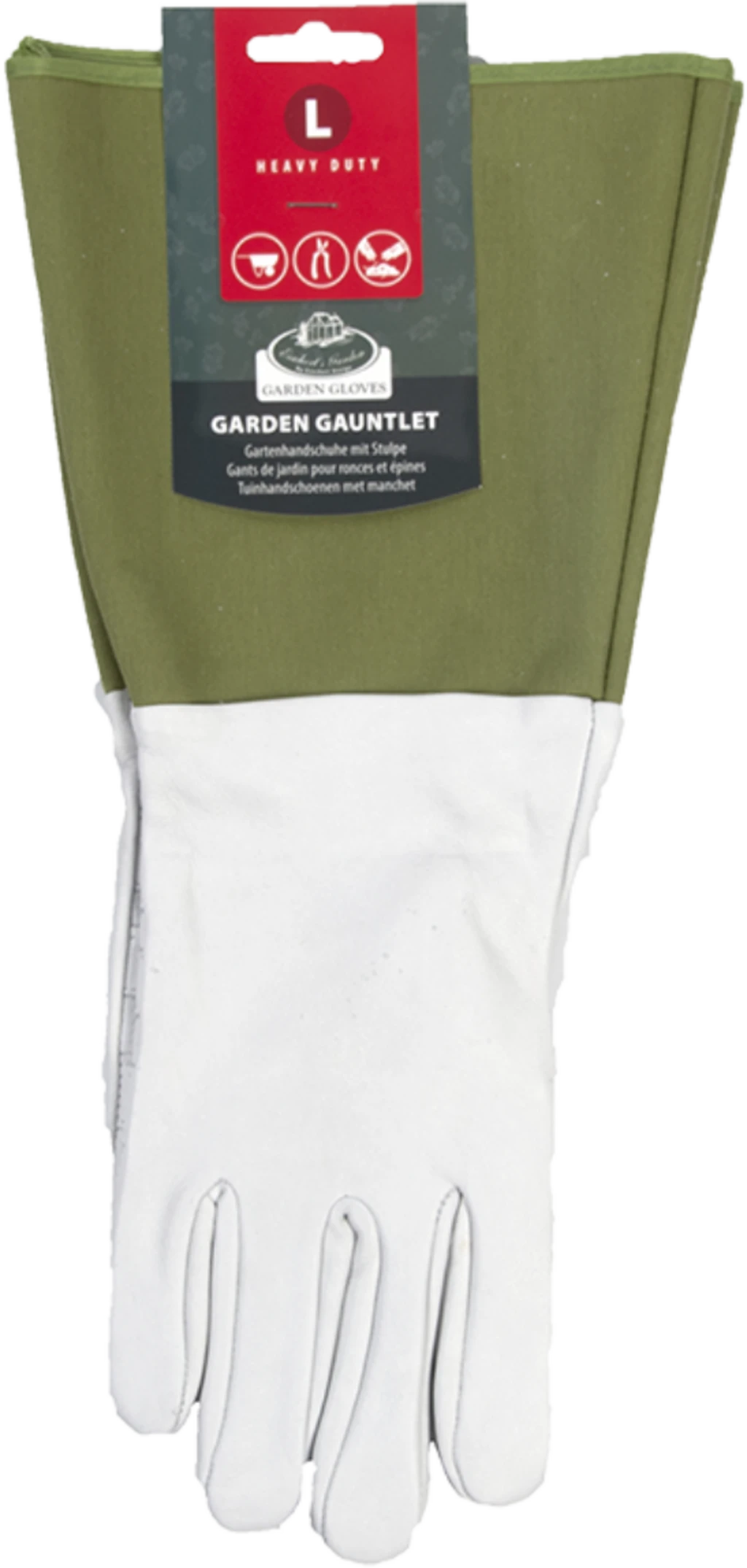 Mit den Gartenhandschuhen aus robustem Leder und Segeltuch haben selbst Dornen schlechte Karten. Der lange Schaft schützt nicht nur Hände, sondern auch Unterarme, wodurch sich die Handschuhe bestens für schwere Gartenarbeiten eignen.