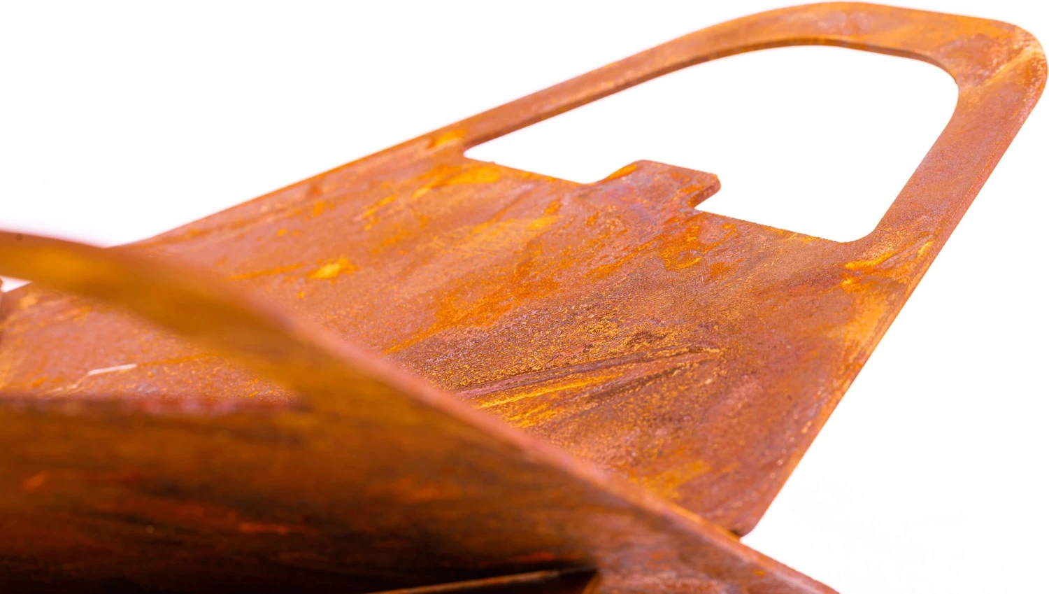 Die Feuerschale wird in Edelstahl ausgeliefert. Die Rostoptik entsteht erst mit der Zeit durch Witterungseinflüsse.