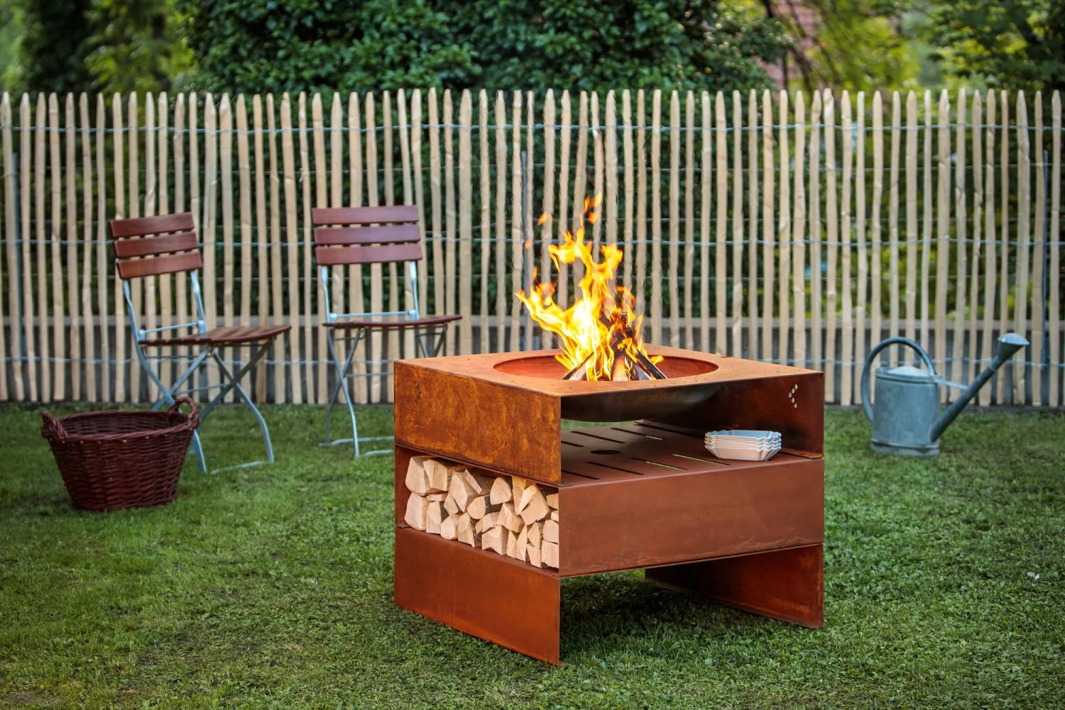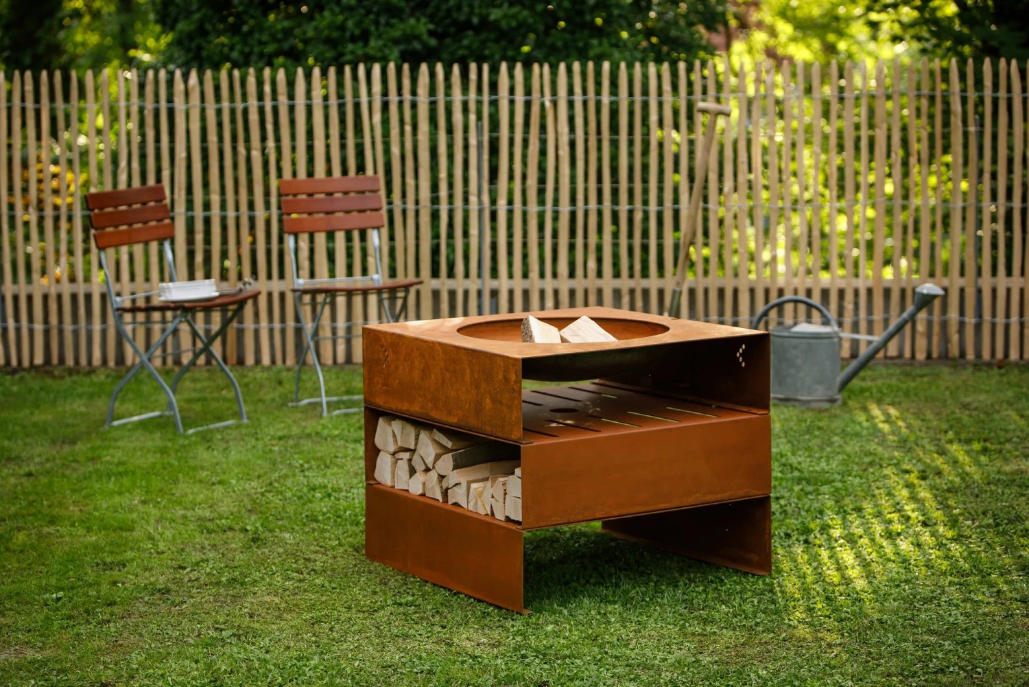 Light-my-fire.great-cube wurde aus 3 mm dicken wetterfesten Stahl gefertigt, somit kann sie das ganze Jahr über draußen stehen bleiben. Durch die Witterungseinflüsse entwickelt die Feuerstelle bzw. der Grill mit der Zeit, auf der anfangs noch stahlgrauen Oberfläche, eine einzigartige Rostoptik. Ein absoluter Hingucker an lauen Abenden im Garten!