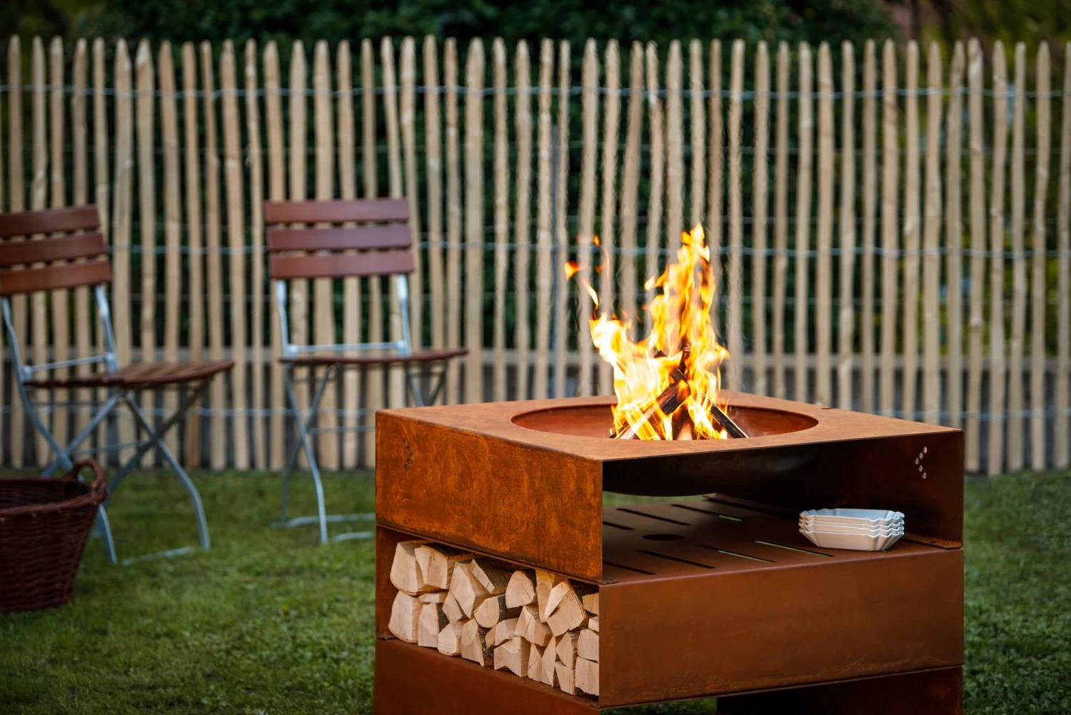 Die Feuerstelle „light-my-fire.great-cube“ bietet ein spannendes Zusammenspiel der gegensätzlichen geometrischen Formen Kreis und Quadrat. Nicht nur hohe Funktionalität zeichnen sie aus, sie ist auch ein ganz besonderes Gestaltungsobjekt im Garten.