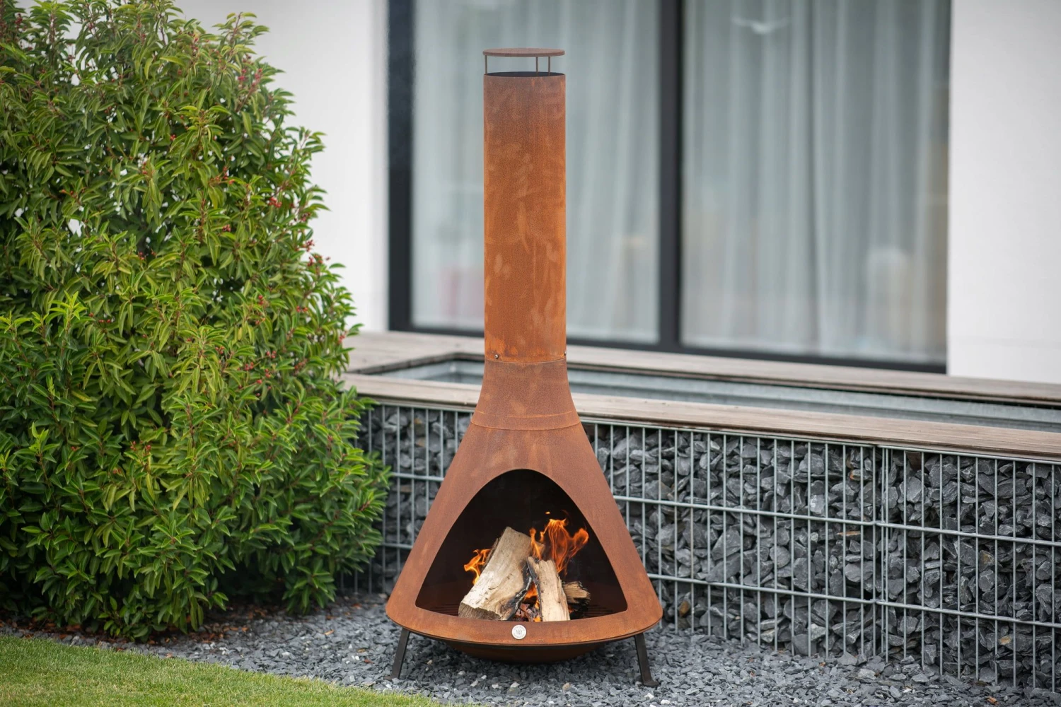 Mit dieser Feuerstelle sorgst du für lauschige Abendstunden im Freien bei prasselndem Feuer und behaglicher Wärme. Die stabilen Füße ermöglichen einen sicheren Stand und der Schornstein sorgt dafür, dass der Rauch zuverlässig abgezogen wird. Das hochwertige Material aus Stahl punktet mit seiner Robustheit und hinterlässt, in Kombination mit dem raffinierten Design, einen bleibenden Eindruck. Ein Must-Have für gemütliche Stunden in Gesellschaft oder um einfach mal die Seele baumeln zu lassen.