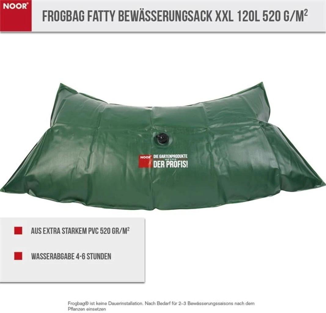 Der Bewässerungssack „Fatty“ eignet sich vor allem für ältere Bäume mit breitem Stamm und kann auch mit Flüssigdünger kombiniert werden. Natürlich ist er laufend wiederverwendbar und spart neben Wasser auch jede Menge Zeit. Die Wasserabgabe erfolgt über einen Zeitraum von 4 bis 6 Stunden und verhindert zuverlässig ein Ausschwemmen des Erdreichs.