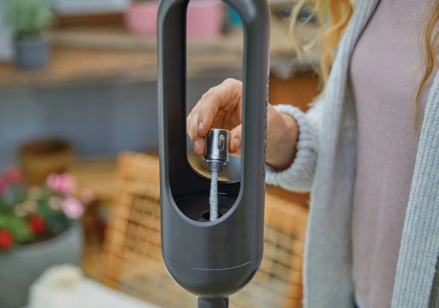 Die Fackel wird mit einem Klick auf dem ClickUp! Stiel (siehe Zubehör) befestigt. Den Tank (350 ml Volumen) einfach mit herkömmlichen Lampenöl befüllen und schon hast du für mindestens 6 Stunden eine schöne und warme Beleuchtung im Garten.