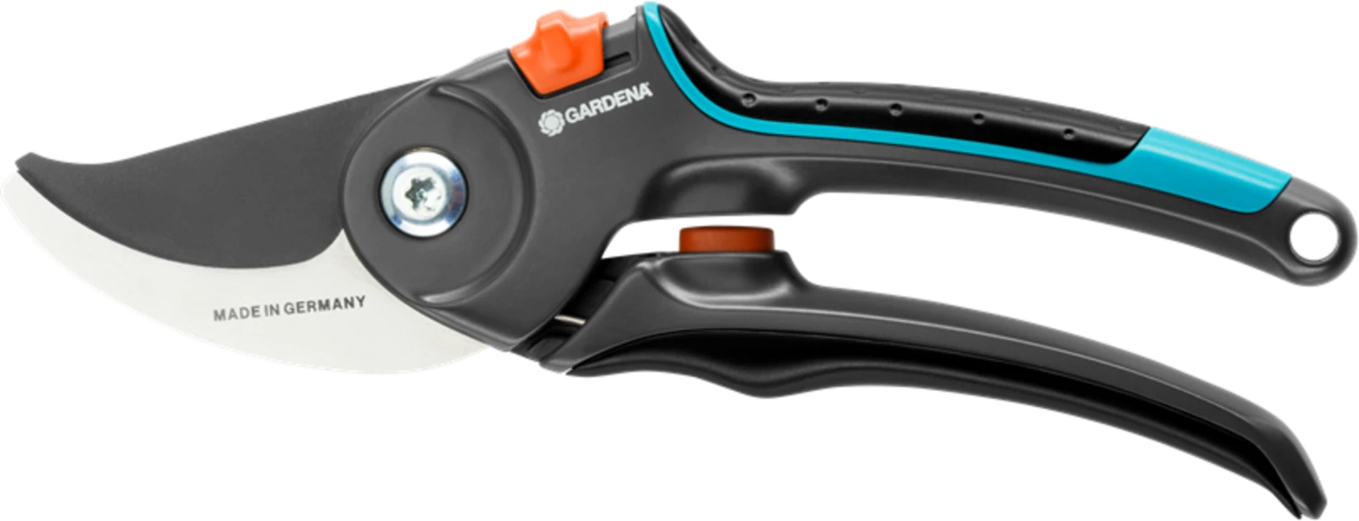Mit dieser Gartenschere können Blumen, junge Triebe und frisches Holz komfortabel geschnitten werden. Das Obermesser ist antihaftbeschichtet, das Untermesser aus rostfreiem Edelstahl. Die Feder ist in die Schere integriert und ist somit perfekt gegen Schmutz geschützt. Der Sicherheitsverschluss kann bequem mit nur einer Hand bedient werden.