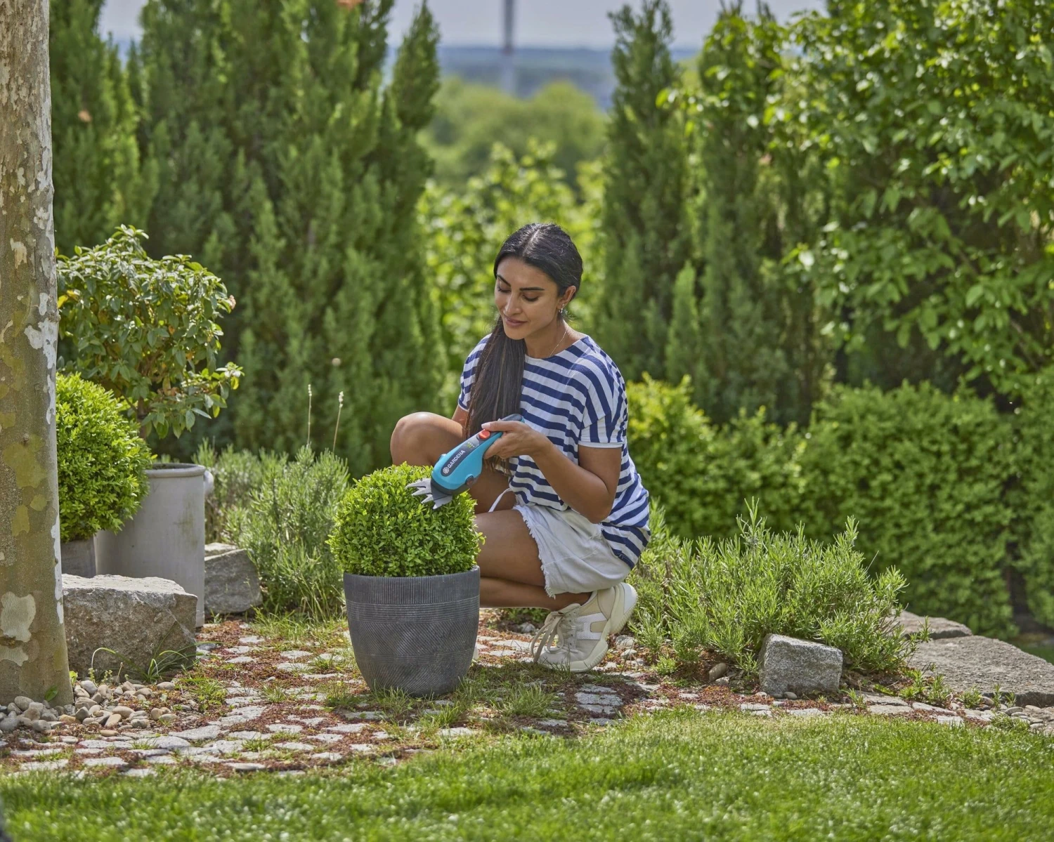 Die Akku-Grasschere ClassicCut Li sorgt für gepflegte Rasenkanten und perfekt geschnittene Kleinsträucher, wie Buchsbaum und Co. Die präzisionsgeschliffene und antihaftbeschichtete Klinge garantiert eine lang anhaltende Schärfe und ermöglicht einen sauberen und präzisen Schnitt.