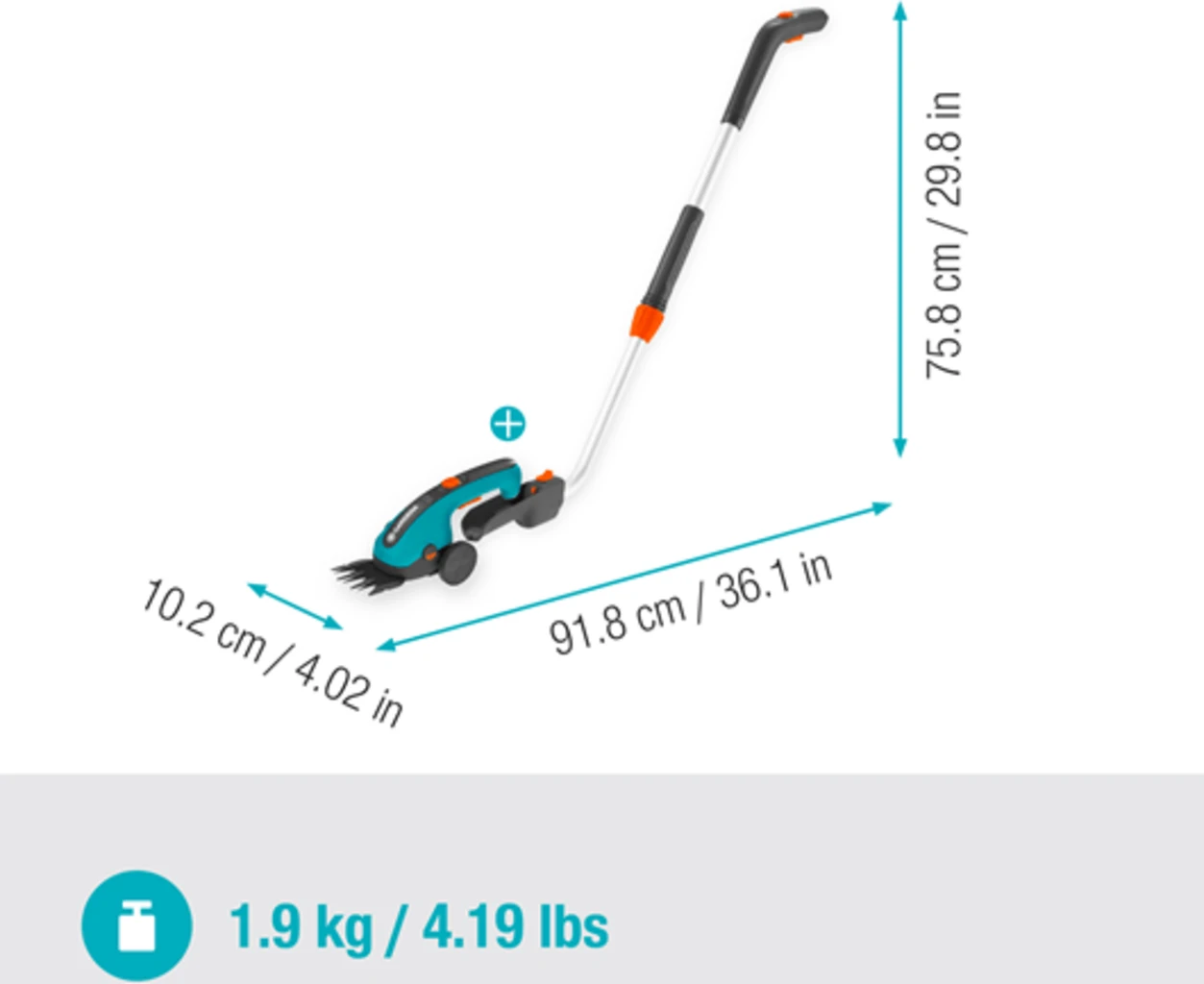 Die Grasschere kann mit oder ohne Teleskopstiel verwendet werden und sorgt mit ihrem geringen Gewicht für ein ermüdungsfreies Arbeiten. Der Teleskopstiel lässt sich individuell an deine Bedürfnisse anpassen und liegt mit seinem ergonomischen Griff gut in der Hand. Die Rollen am Teleskopstiel ermöglichen dir eine schnelle und einfache Arbeitsweise.