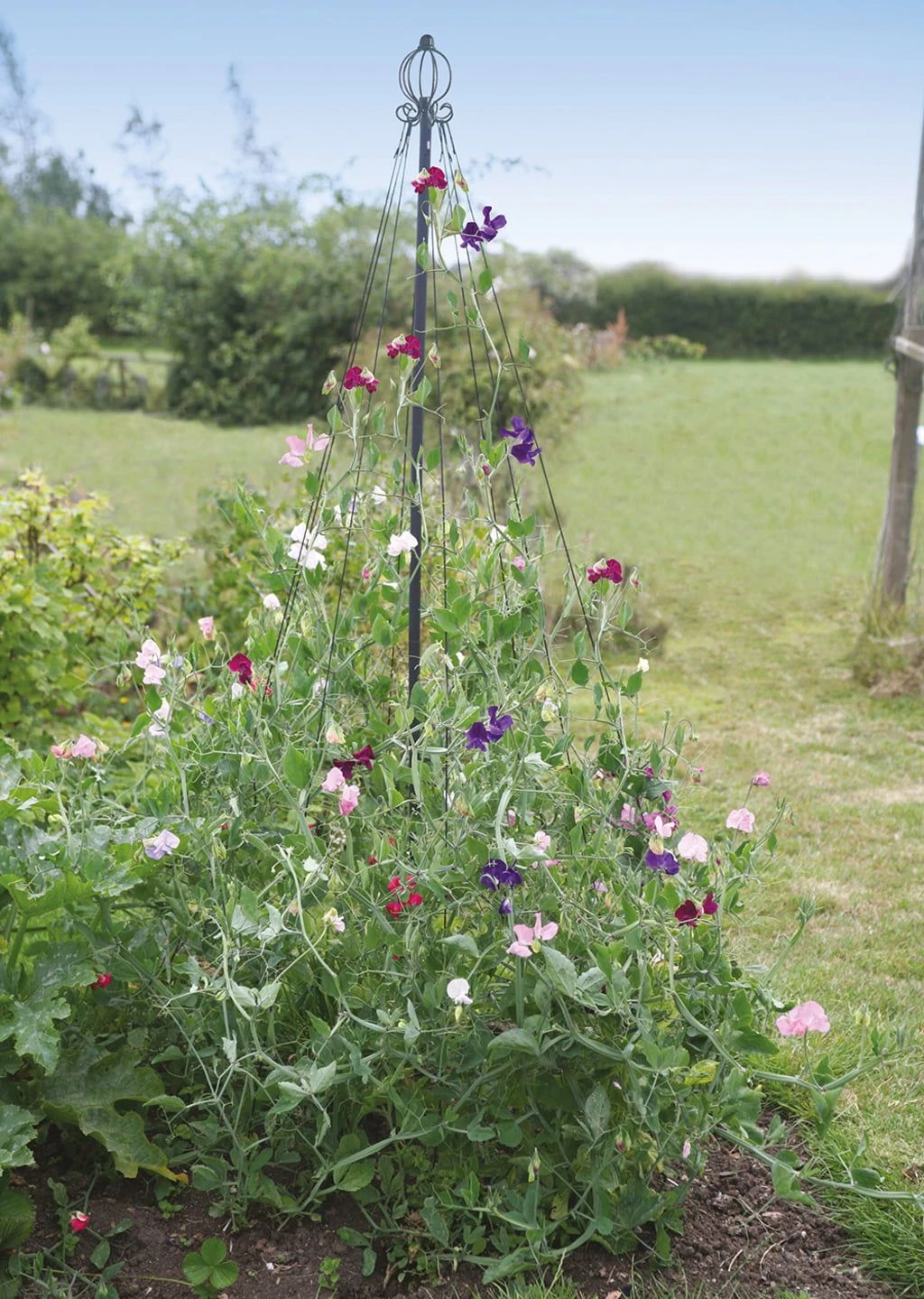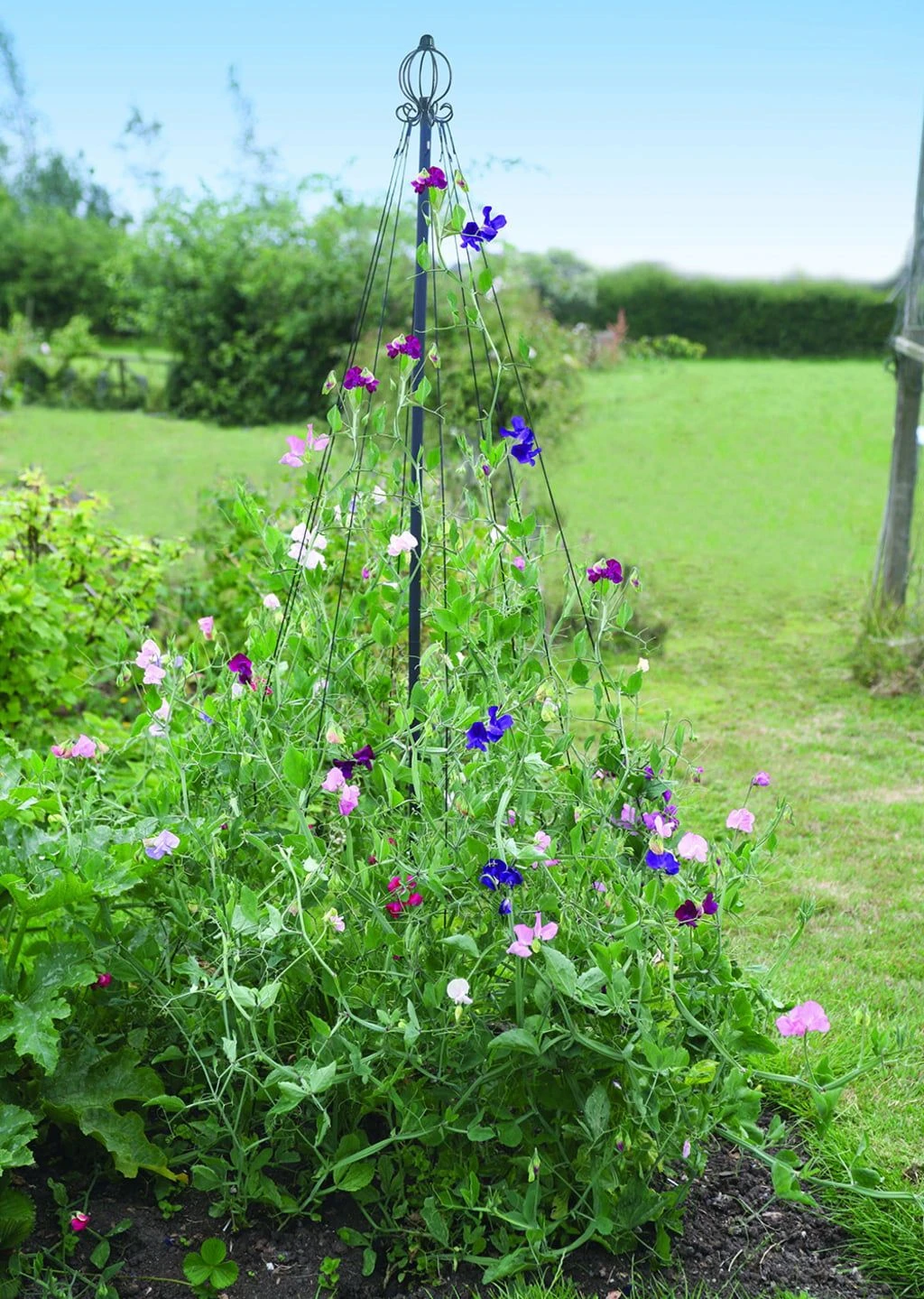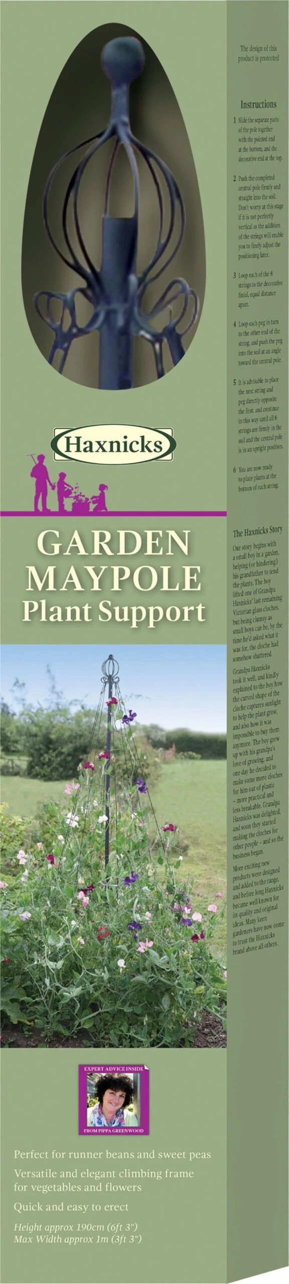 Vielseitig und elegant, besonders das pulverbeschichtete Stahl. Die Form erinnert an einen Maibaum. Ideal für ein- und mehrjährige Kletterpflanzen (z.B. Wicken) oder Stangenbohnen. Die Funktion ist einfach und simpel: Fixieren Sie den Maibaum über Ihren Kletterpflanzen und klemmen Sie die Pflanzen auf die Stäbe. Der Maibaum kann je nach Größe und Wachstum verstellt werden.