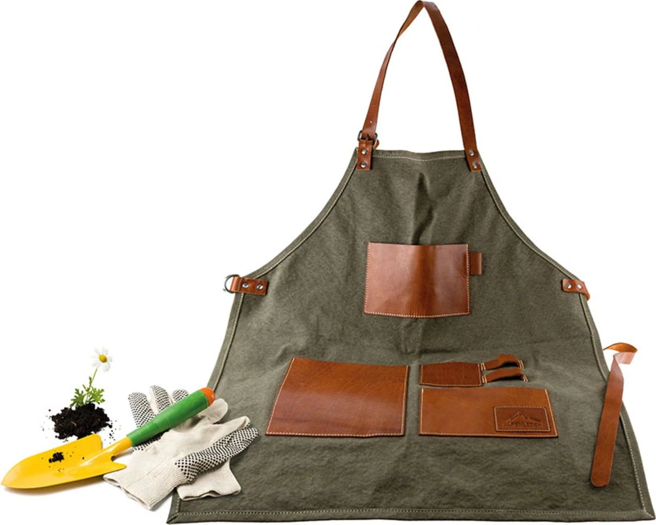 Ein absolutes Must-have für passionierten GärtnerInnen und solche, die es werden wollen. Doch nicht nur optisch ist diese robuste Canvas-Schürze ein absolutes Highlight, denn sie punktet auch mit praktischen Details. In den aufgesetzten Ledertaschen und -laschen lassen sich Werkzeuge, Gartenhandschuhe & Co. jederzeit griffbereit und sicher verstauen.