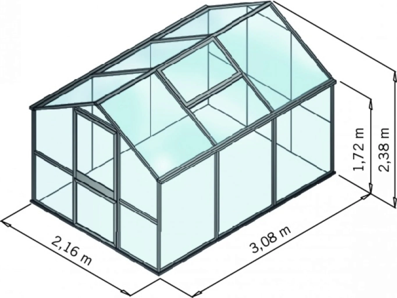 | Verglasung | Dach: ISO Hohlkammerplatten 10 mm Giebel & Seitenwände: ESG Einscheibensicherheitsglas 4 mm |