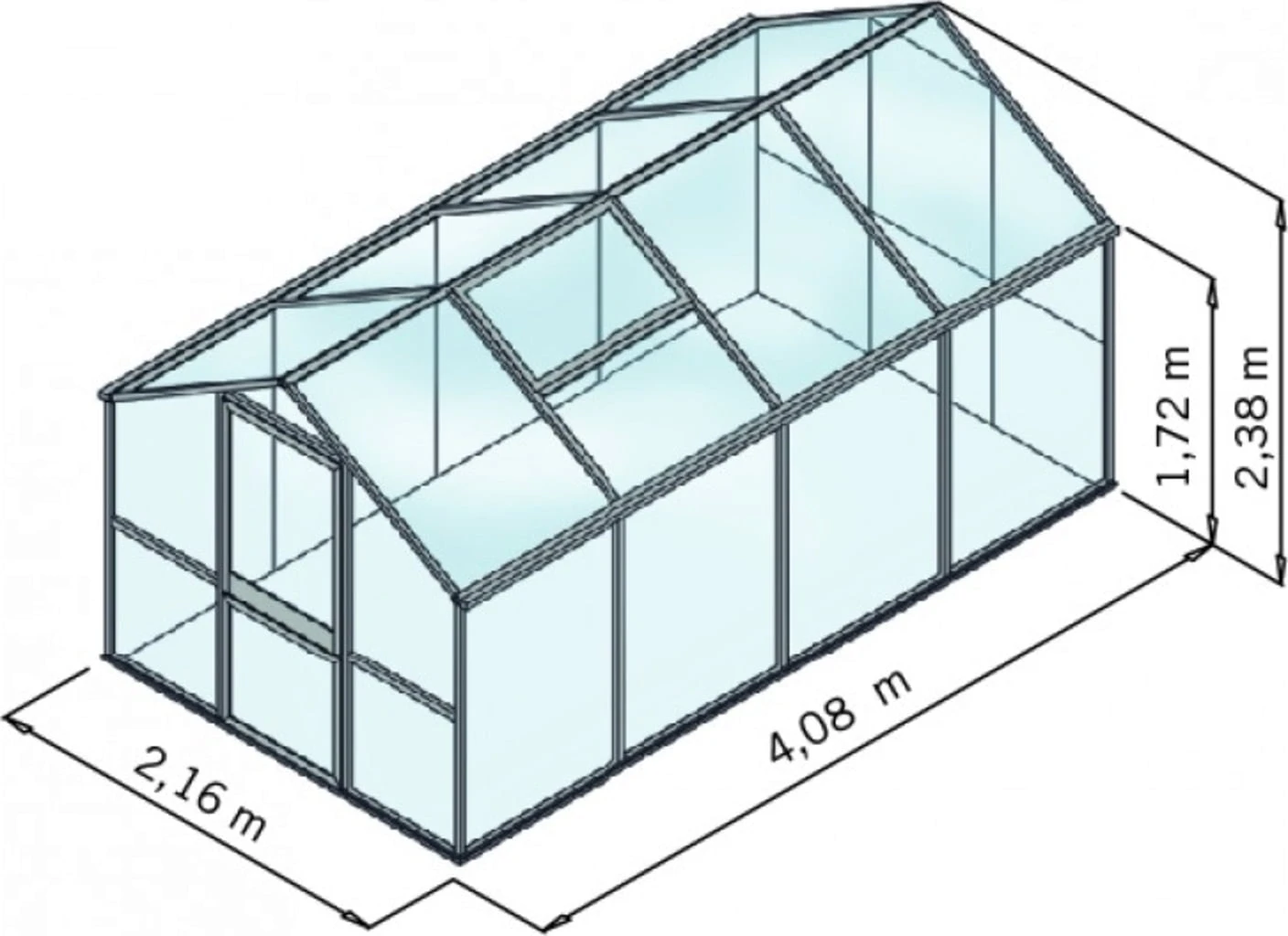 | Verglasung | Dach: ISO Hohlkammerplatten 10 mm Giebel & Seitenwände: ESG Einscheibensicherheitsglas 4 mm |