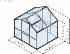 Das Gewächshaus Rose wird selbst den höchsten Ansprüchen gerecht. Durchgängige Aluminiumprofile sowie eine ausgereifte Verglasungstechnik gewährleisten eine enorme Stabilität und die damit einhergehende Sicherheit. Das edle Farbbild in Anthrazit verkörpert dabei zeitlose Eleganz, sodass sich das Gewächshaus mit Leichtigkeit in nahezu jeden Gartenstil einfügt.