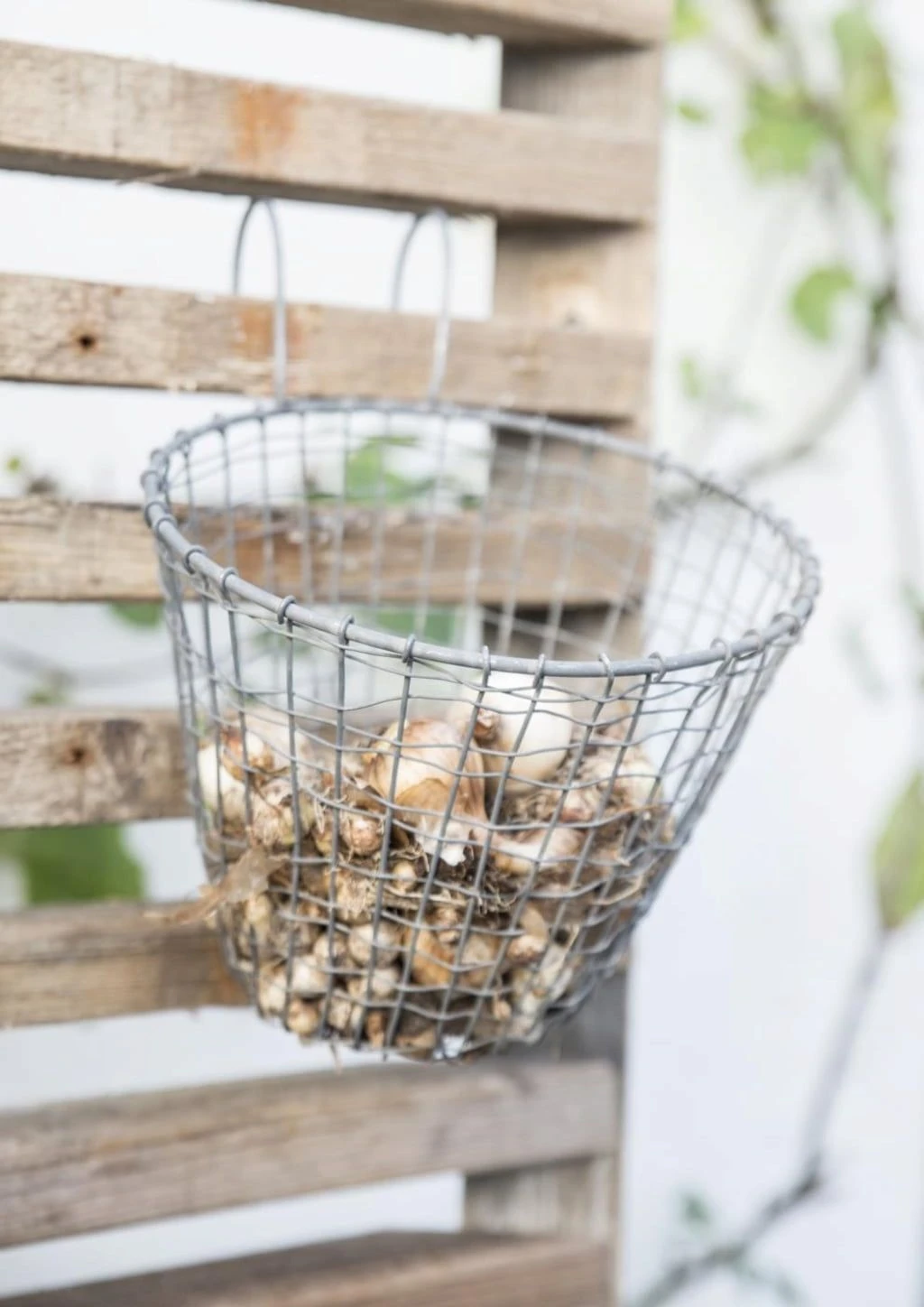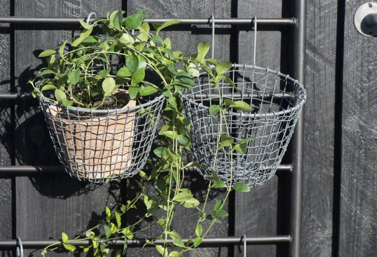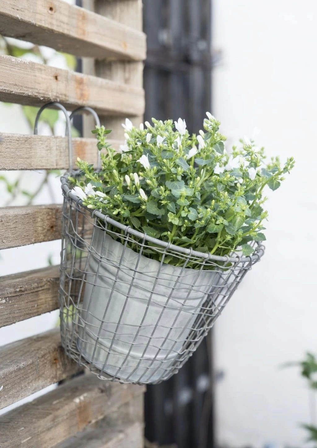Der zauberhafte Hängeblumentopf aus robustem Metallgeflecht kann ganz einfach am Balkongeländer, einem Pflanzenspalier oder ähnlichem befestigt werden. Bewahre darin Utensilien auf oder nutze ihn für deine Lieblingspflanzen.