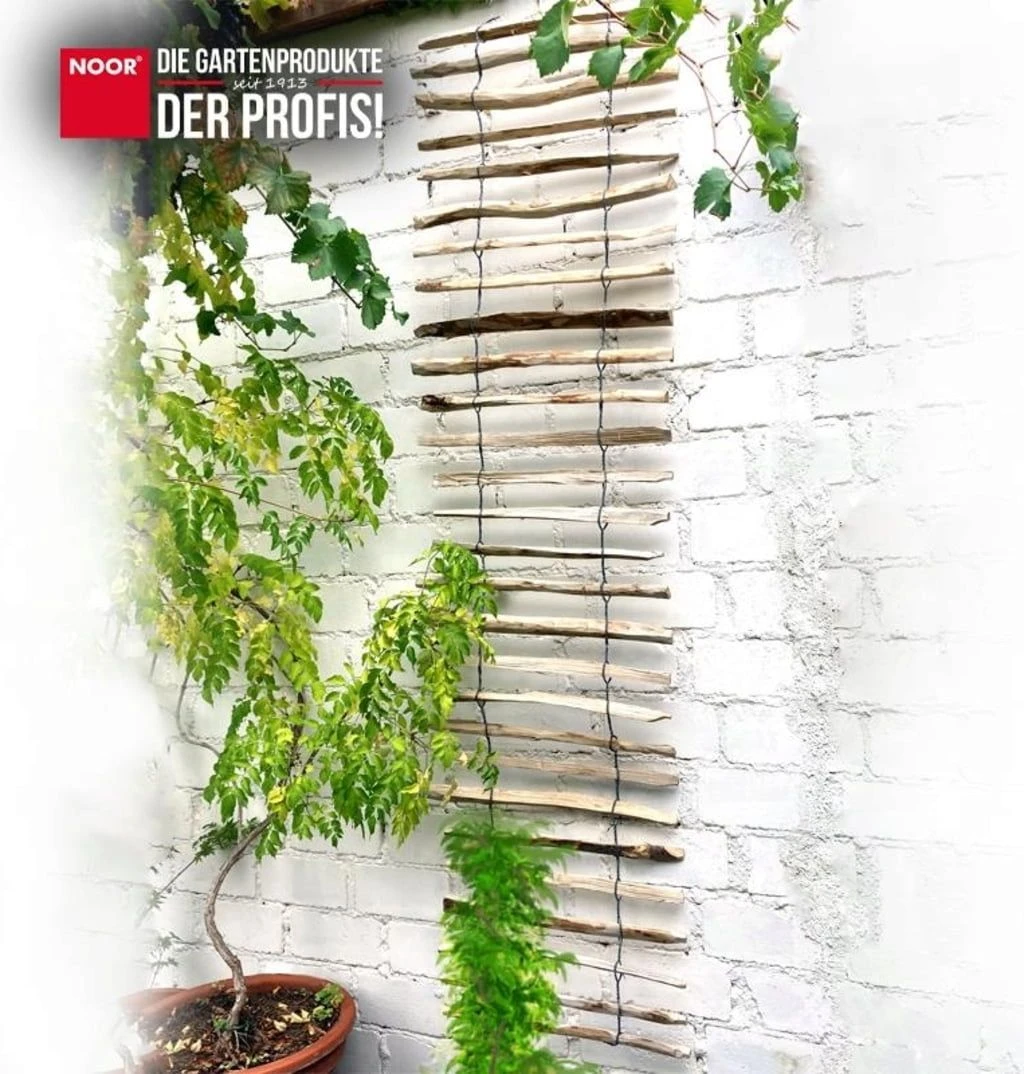Mit der Haselnuss-Rankhilfe aus naturbelassenem Holz unterstützt du deine Pflanzen optimal beim Klettern und Ranken. Verschönere damit gleichzeitig deine Wände im Außenbereich oder schaffe einen natürlichen Sichtschutz auf dem Balkon oder der Terrasse.