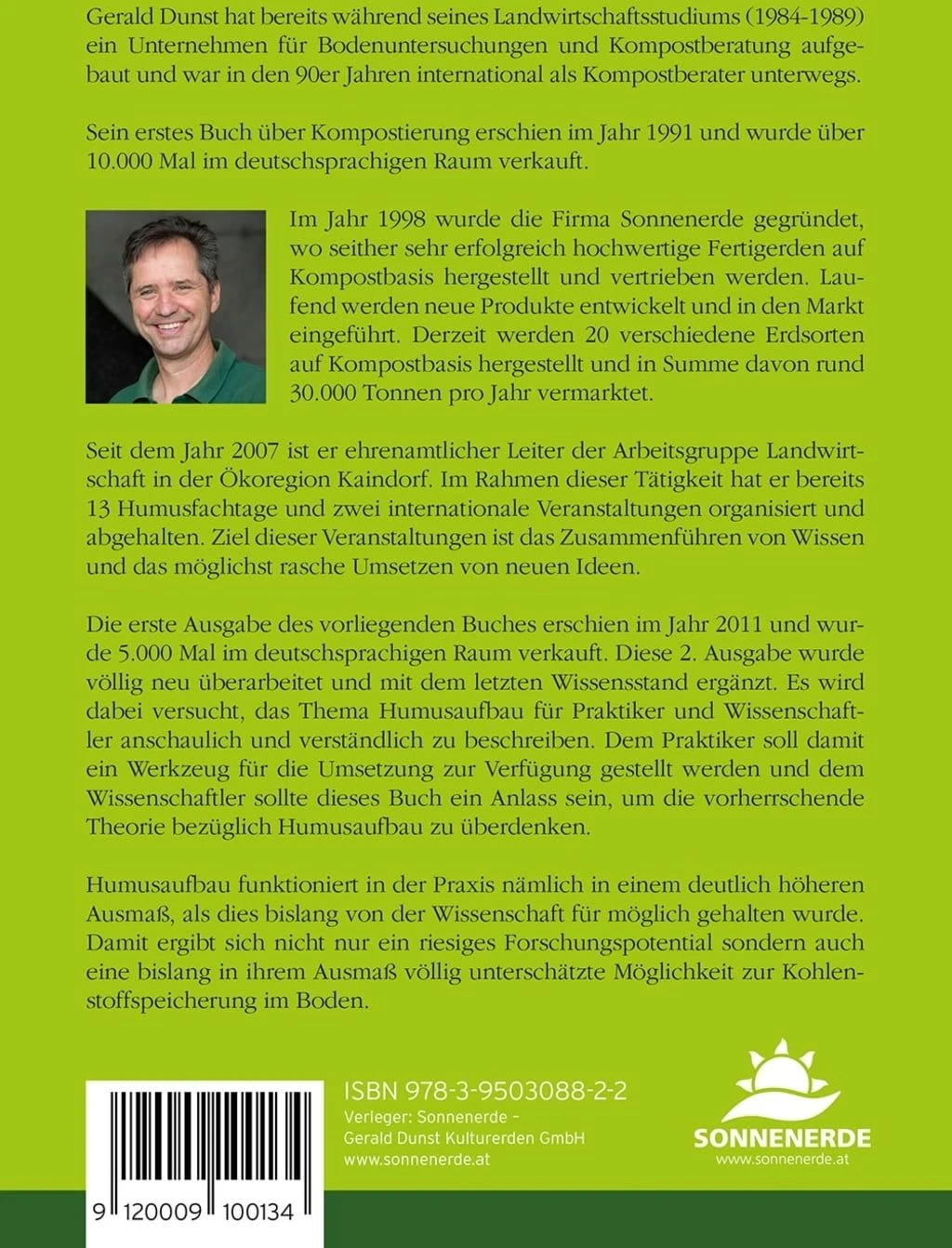In diesem Buch wird allgemein verständlich beschrieben, wie wichtig der Boden als Kohlenstoffspeicher ist, und wie wenig davon eigentlich allgemein bekannt ist. Gerald Dunst, der Autor dieses Buches und Leiter des Humusprojektes der Ökoregion Kaindorf hat sein gesamtes Wissen in diesem Buch geschildert. Er beschreibt, dass Humusaufbau nicht nur möglich, sondern gleichzeitig eine große Chance ist, um den bereits stattfindenden Klimawandel etwas Wichtiges entgegenzusetzen.