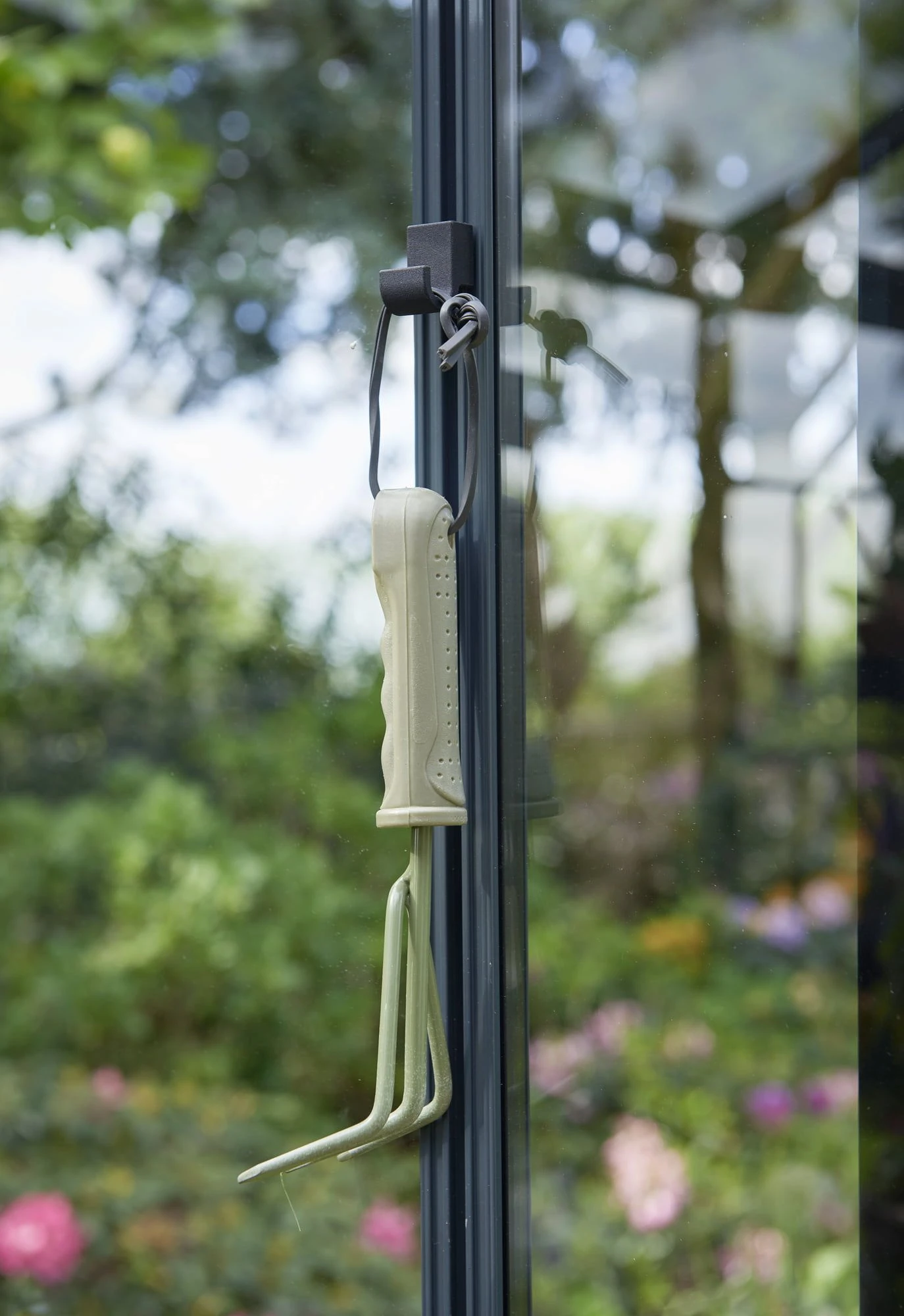 Die Aufhängungshaken lassen sich unkompliziert im Profilsystem deines Gewächshauses montieren und eignen sich wunderbar zum Aufhängen von Werkzeugen und Gartenhandschuhen oder zum Realisieren eigener DIY-Projekte.