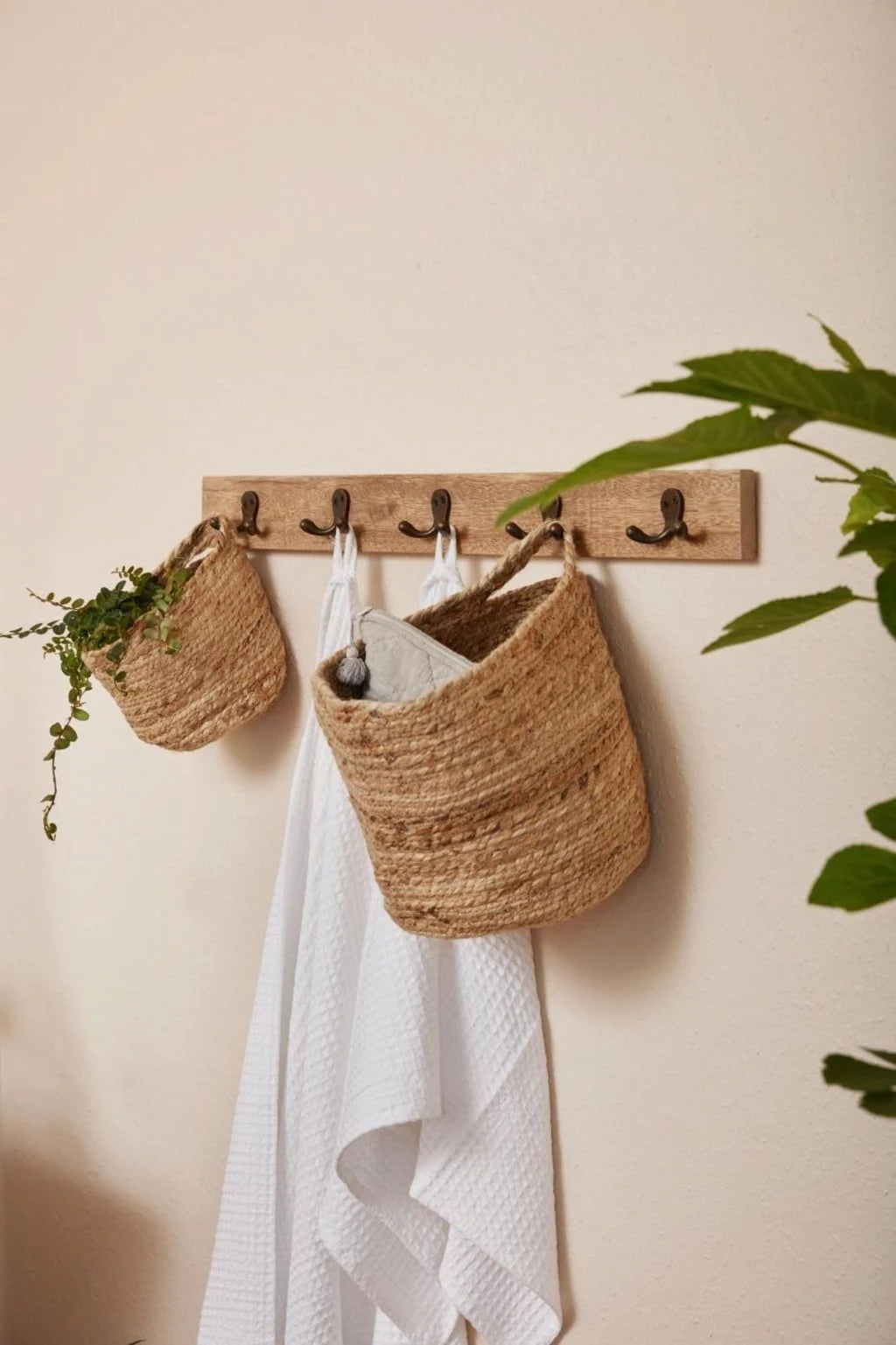 Der Jute-Korb mit Henkel ist die ideale Lösung für stilvolle Organisation und Ordnung in deinem Zuhause. Mit dem Henkel kannst du den Korb unkompliziert tragen und umplatzieren, aber auch einfach und dekorativ an einem Haken hängen. Ein echter Hingucker für Küche, Bad, Flur oder Wohnzimmer.
