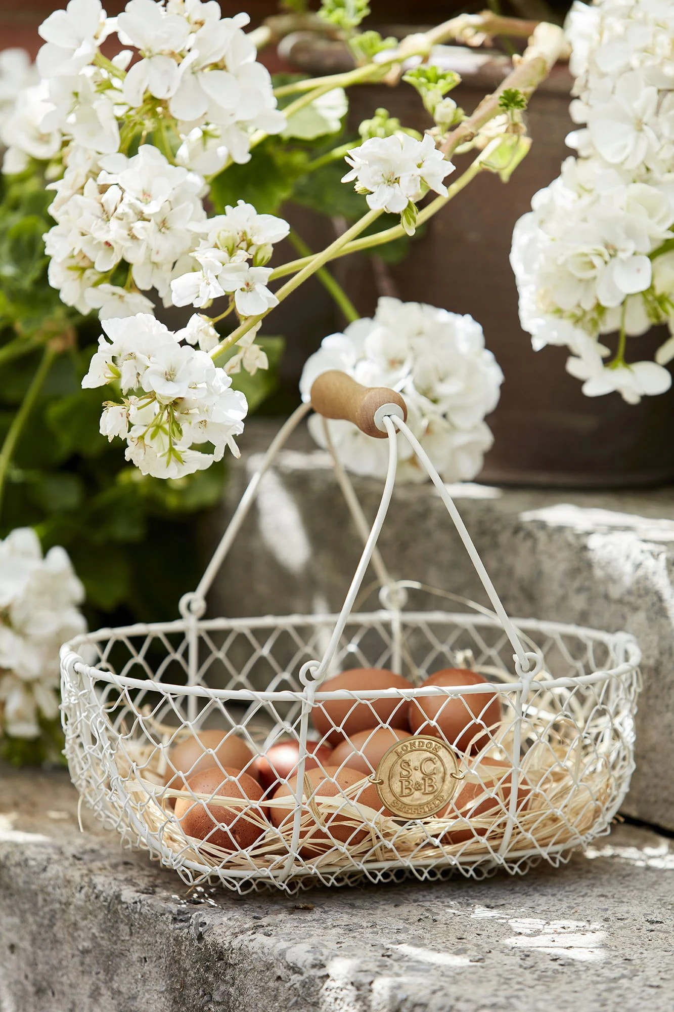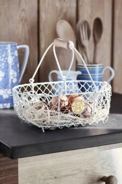In diesem hübschen Korb kannst du deine Ernte sicher nach Hause bringen. Die Fertigung aus hochwertigem Metalldraht macht dieses nützliche Accessoire nicht nur überaus robust, sondern schenkt ihm auch seine ansprechende Optik. So ist dieser aufwendig von Hand gefertigte Korb auch ein ganz besonderer Hingucker in jeder Küche, der mit seinem unwiderstehlichen Landhaus-Charme bezaubert.