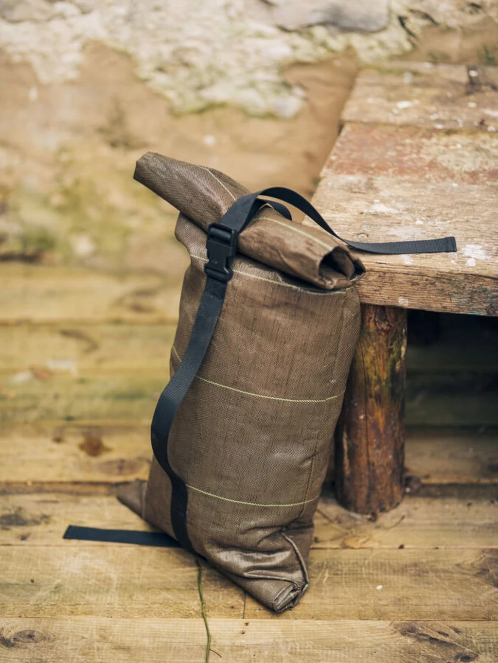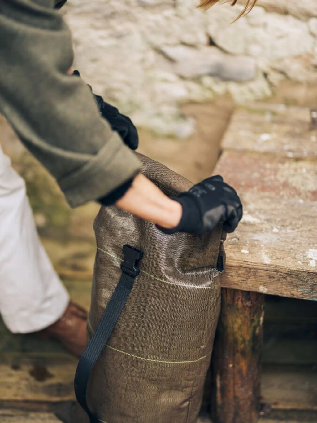 - Schließe den Komposter und ziehe den Gurt eng zusammen; die Kompostbildung beginnt am Boden des Komposters