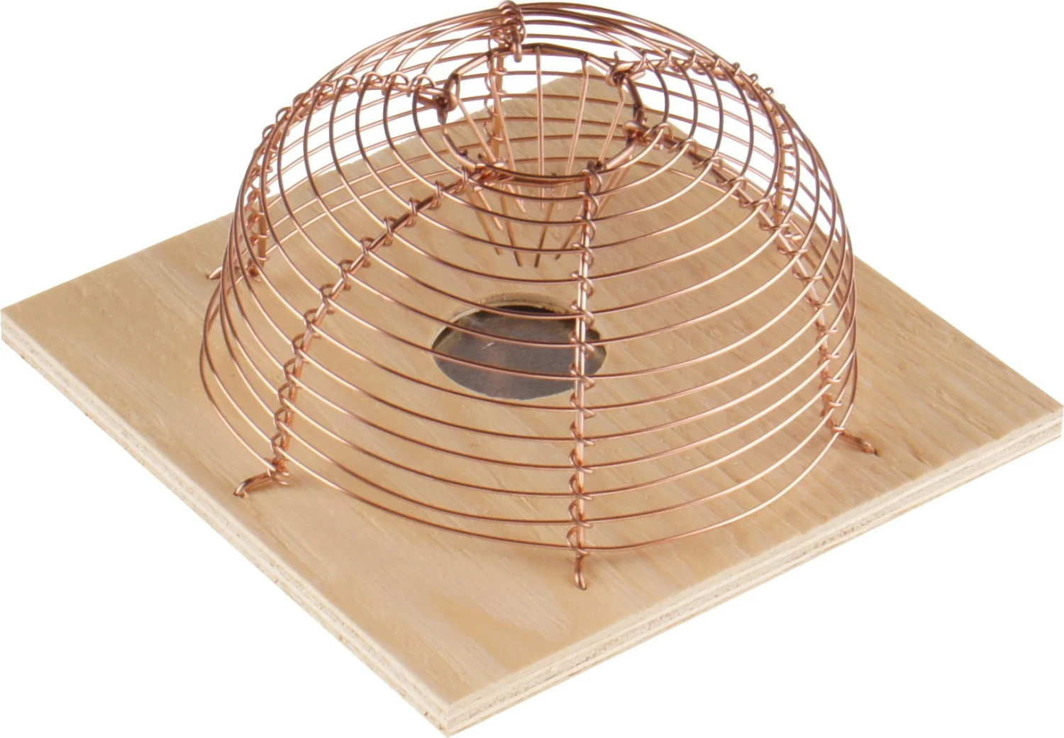 Der runde, kräftige Drahtkorb auf einer Holzplatte ist bestens geeignet für den tierfreundlichen Lebendfang von Mäusen.