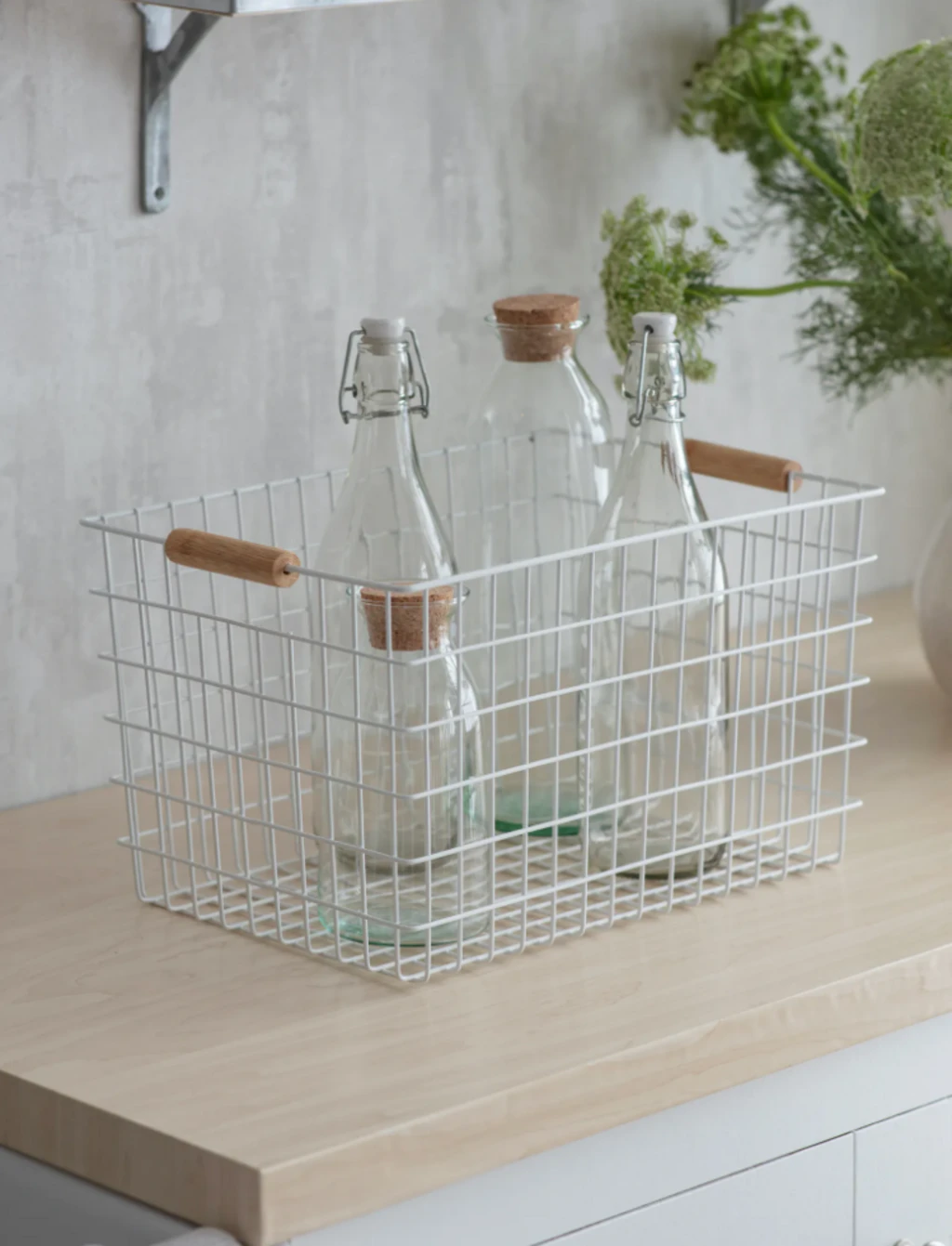 Offene Aufbewahrungsmöglichkeiten erlauben eine schnelle Sicht auf den Inhalt. Wer auf moderne und luftige Looks steht, wird von diesen fabelhaften Körben begeistert sein. Die helle Gestaltung verkörpert Weitläufigkeit und steht in tollem Kontrast zu den runden Griffen aus Bambus. Der perfekte Stauraum für Dekoratives und all jenes, das schnell gefunden werden möchte.