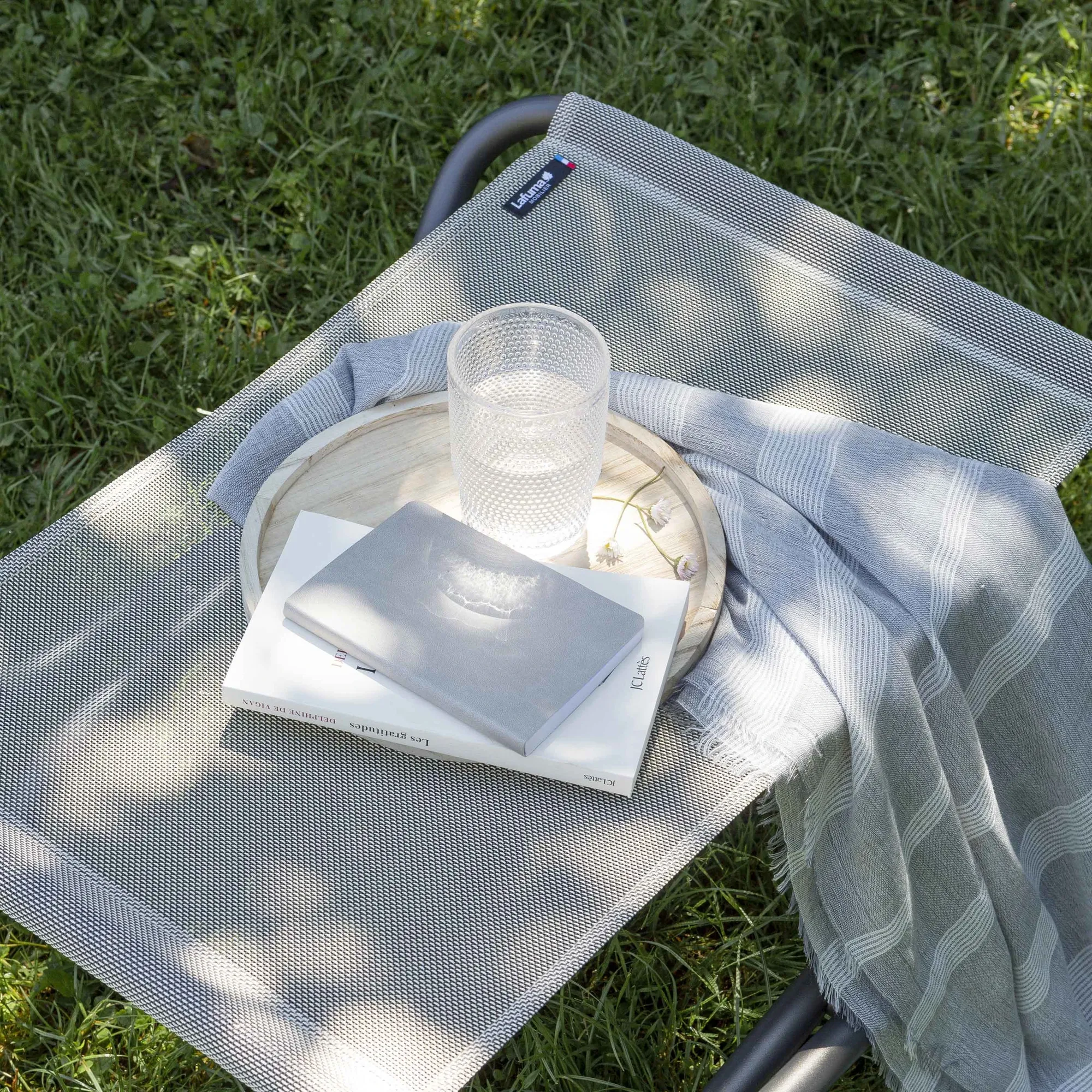 Die Rohrstruktur aus verzinktem und lackiertem THLE-Stahl ist besonders widerstandsfähig, korrosionsgeschützt und UV-resistent. Der Bezug aus innovativem Batyline ISO ®-Material ist ausgesprochen formstabil, reißfest und UV-resistent, aber dennoch unvergleichlich luftig, schnelltrocknend und wasserdurchlässig. Eine spezielle Imprägnierung schützt außerdem zuverlässig vor Schimmelbildung.