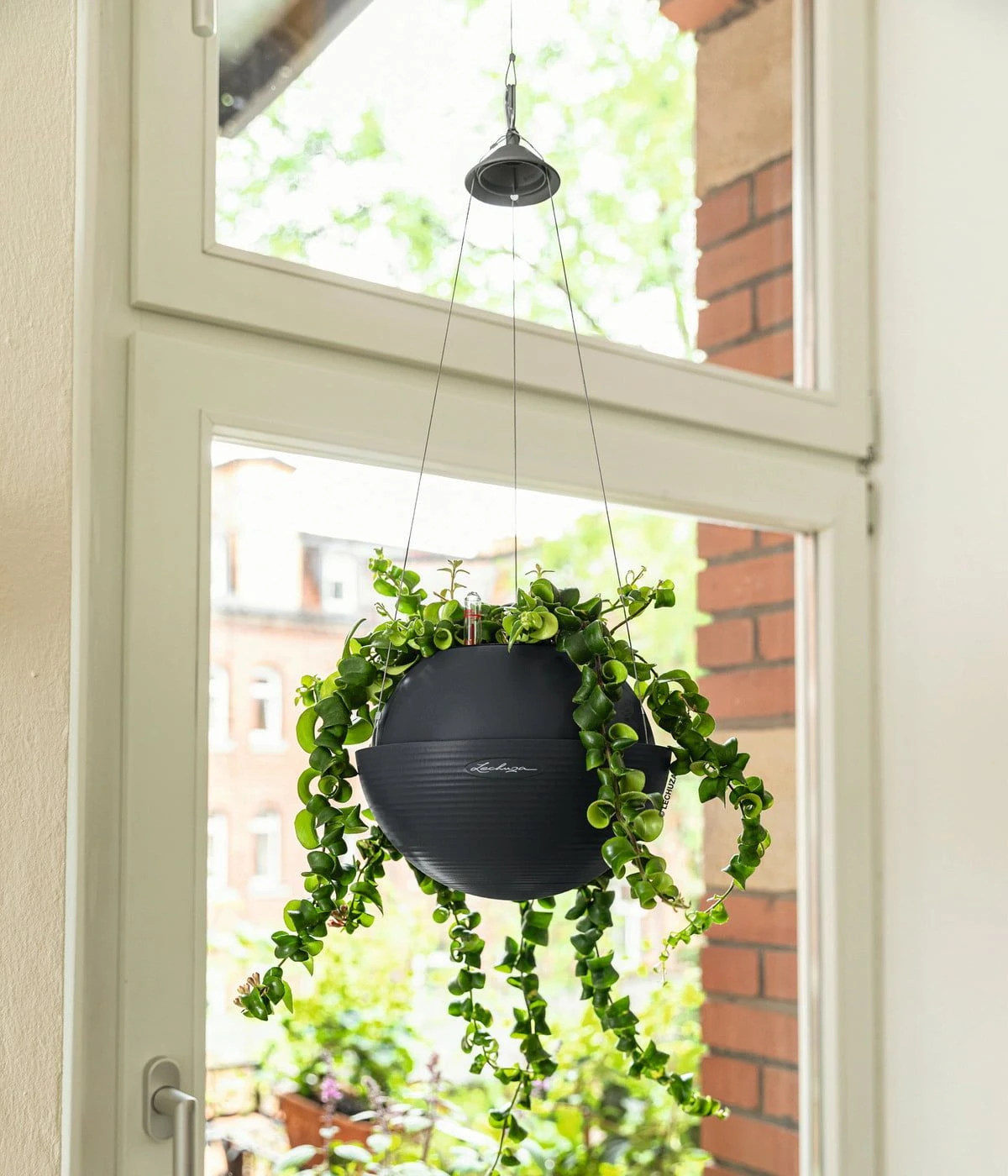 Lieferumfang: „All-in-One“-Set, bestehend aus Pflanzgefäß, herausnehmbarem Pflanzeinsatz, Lechuza-Bewässerungsset & Edelstahl-Aufhängung