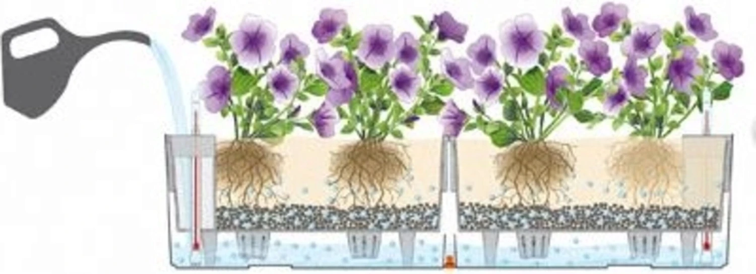 Lieferumfang: Pflanzgefäß, 2 x Pflanzeinsatz, Wasserstandsanzeiger, Granulat