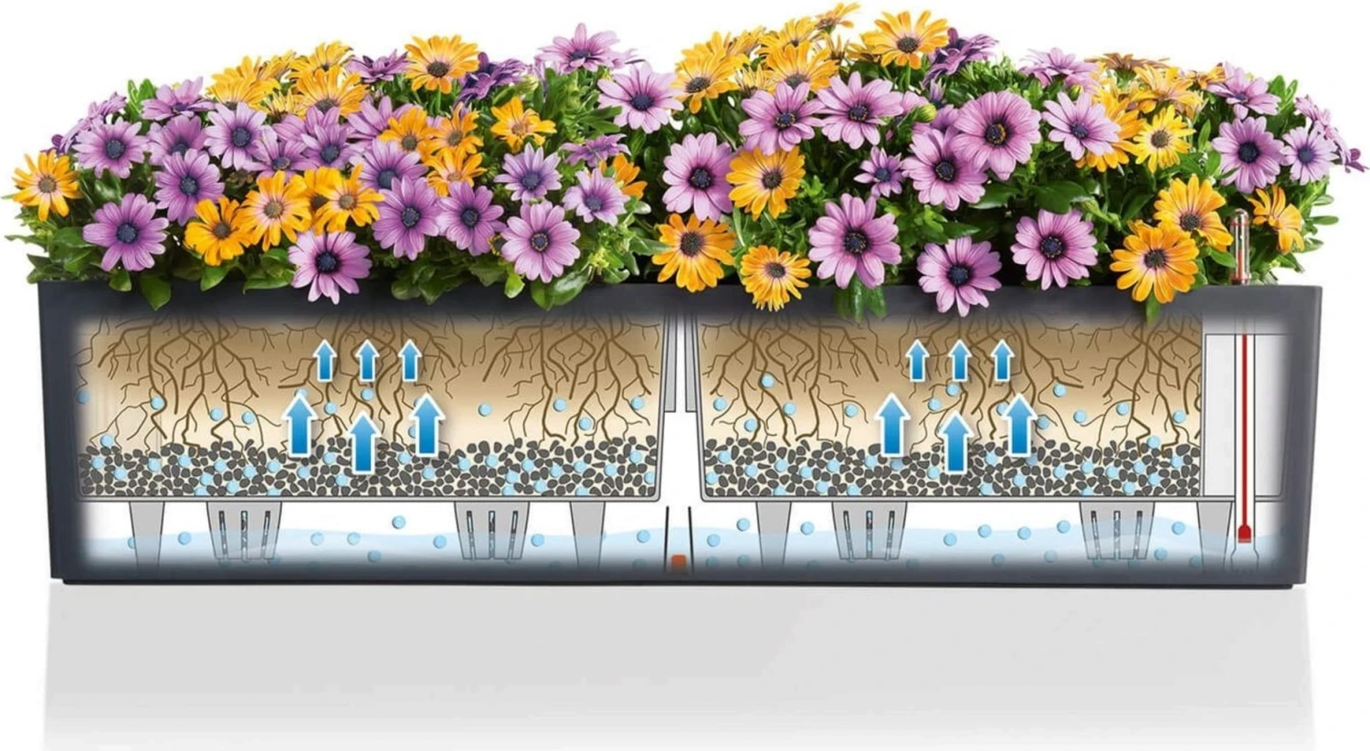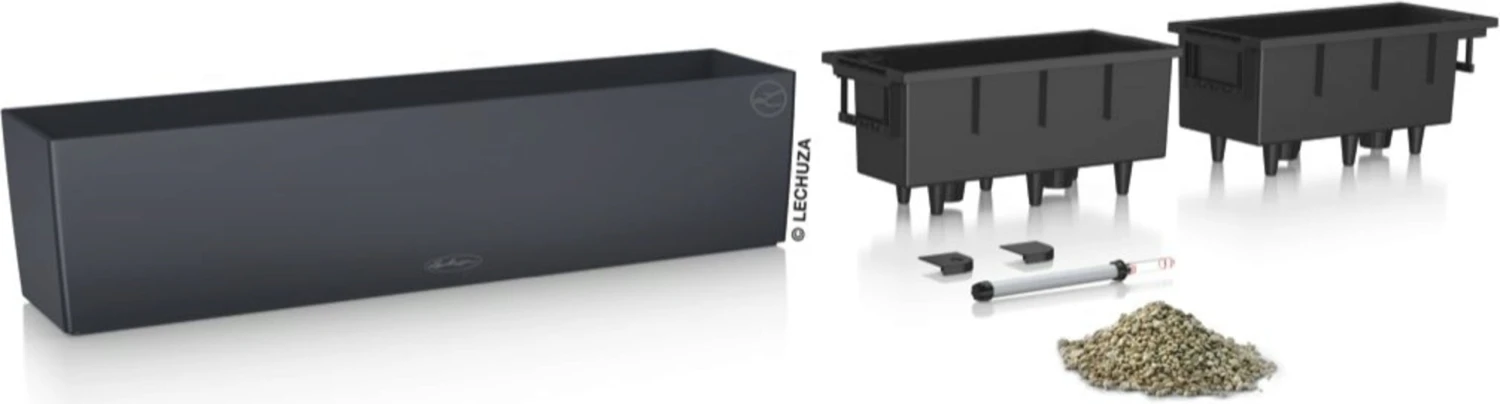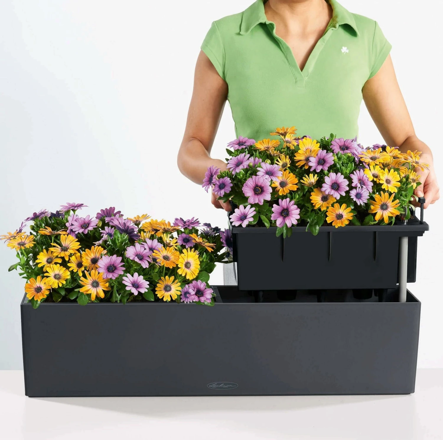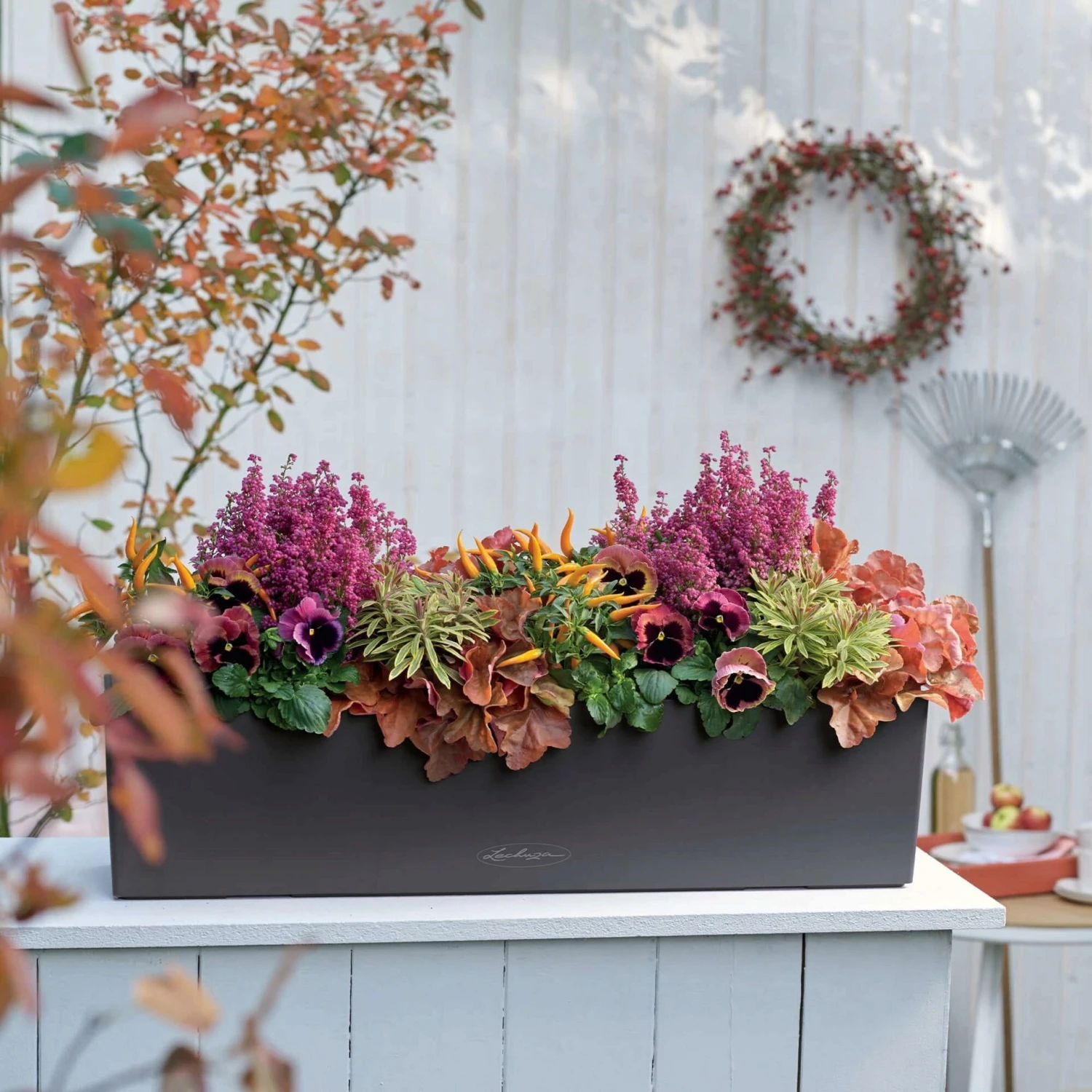 Der Balkonkasten BALCONERA Color 80 von LECHUZA lässt auch bei größter Hitze die Pflanzen nicht hängen. Dank der großen Wasserreservoirs (5 Liter) erhalten sie ausreichend Flüssigkeit. Ganz einfach und bequem die Pflanzeinsätze auf dem Boden oder Tisch bepflanzen und danach in den Balkonkasten setzen. Außerdem überzeugt der Balconera Color 80 durch sein ansprechendes Design.