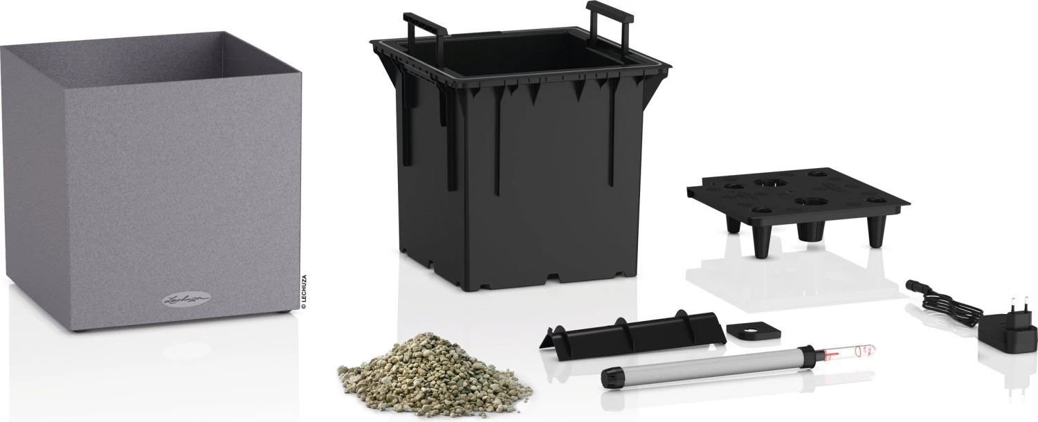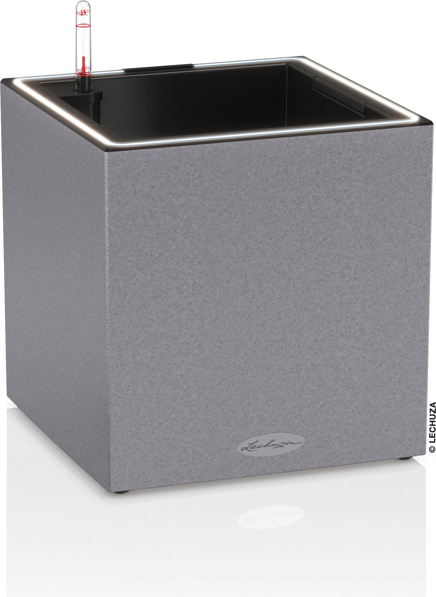 Lieferumfang: Pflanzgefäß + Pflanzeinsatz mit versenkbaren Tragegriffen + Lechuza Bewässerungsset + LED-Beleuchtung + Fernbedienung