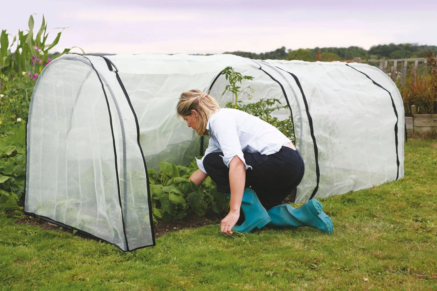 Das feinmaschige Netz liegt eng am Rahmen an und verfügt über vier große Reißverschlüsse. Somit hat man einen einfachen Zugang zum Gemüse. Luft und Wasser dringen mühelos durch, gleichzeitig sind die Pflanzen aber gegen andere Witterungsschäden geschützt.