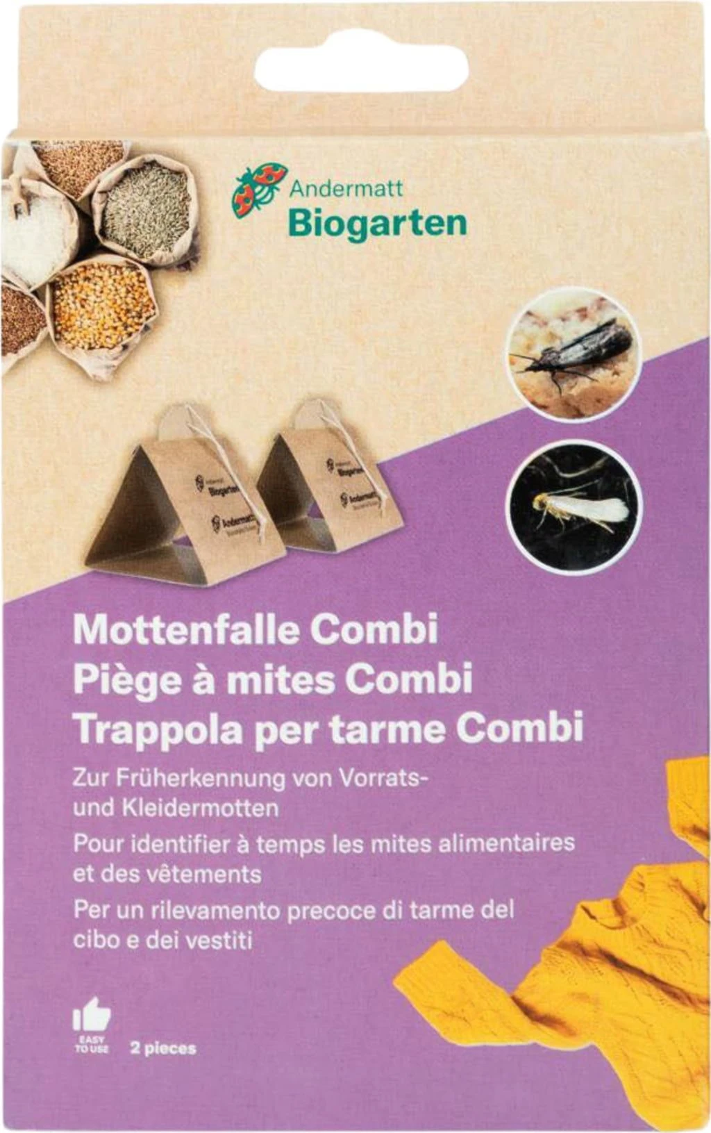 Die dreieckigen Mottenfallen sind mit einem Multilockstoff-Leim versehen. Der Fang bzw. die Früherkennung von Mehl-, Speicher-, Dörrobst- und Kleidermotten ist damit garantiert. Sie bleiben an der Oberfläche kleben.