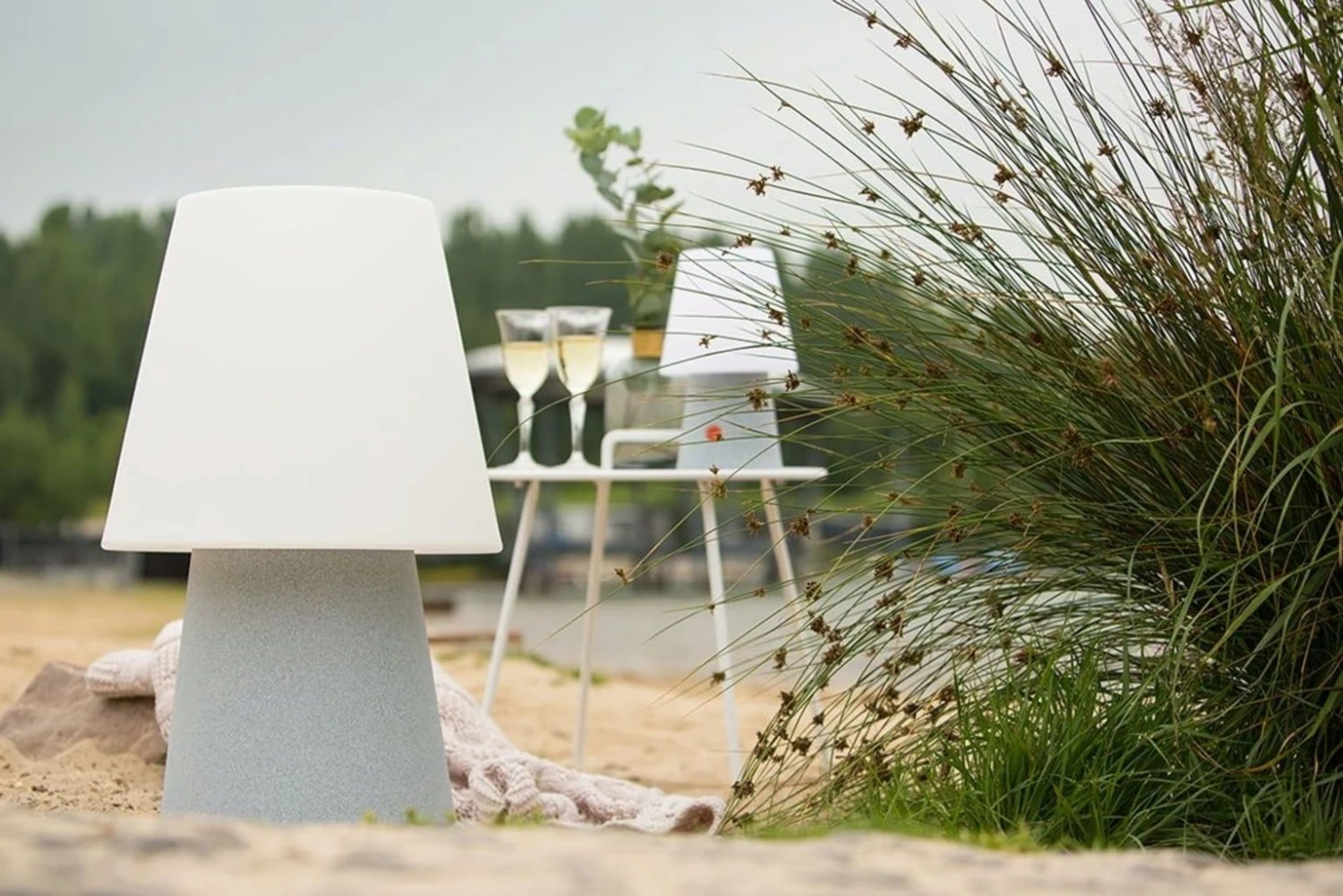 Die in schlichtem und puristischen Design gestaltete Leuchte aus hochwertigem und recyclebarem Kunststoff sorgt im Handumdrehen für eine stimmungsvolle Atmosphäre, egal ob drinnen oder draußen. Ein wunderbar dekoratives Wohnaccessoire, das nicht nur warmweißes Licht spendet, sondern auch im ausgeschalteten Zustand ein absoluter Blickfang ist.