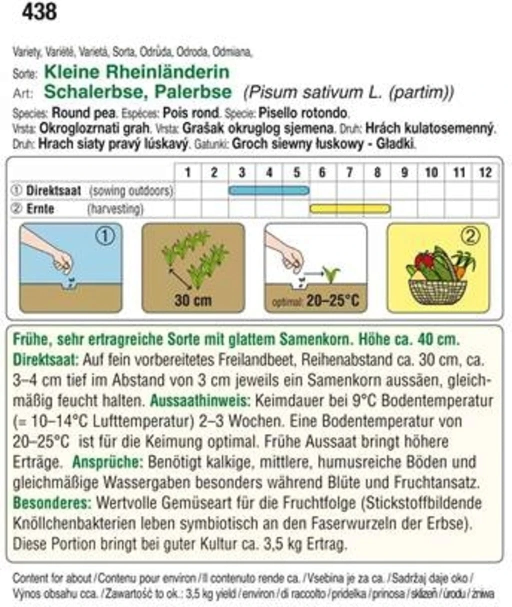 Eine frühe, sehr ertragreiche Sorte mit langen, dunkelgrünen Hülsen und olivgrünen Erbsen. Die Pflanze selbst erreicht eine Höhe von ca. 40 cm.