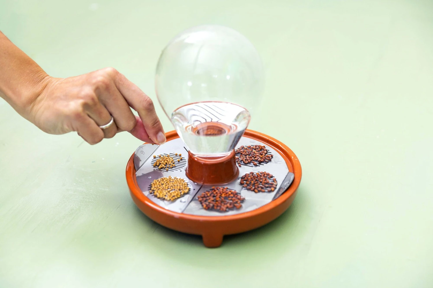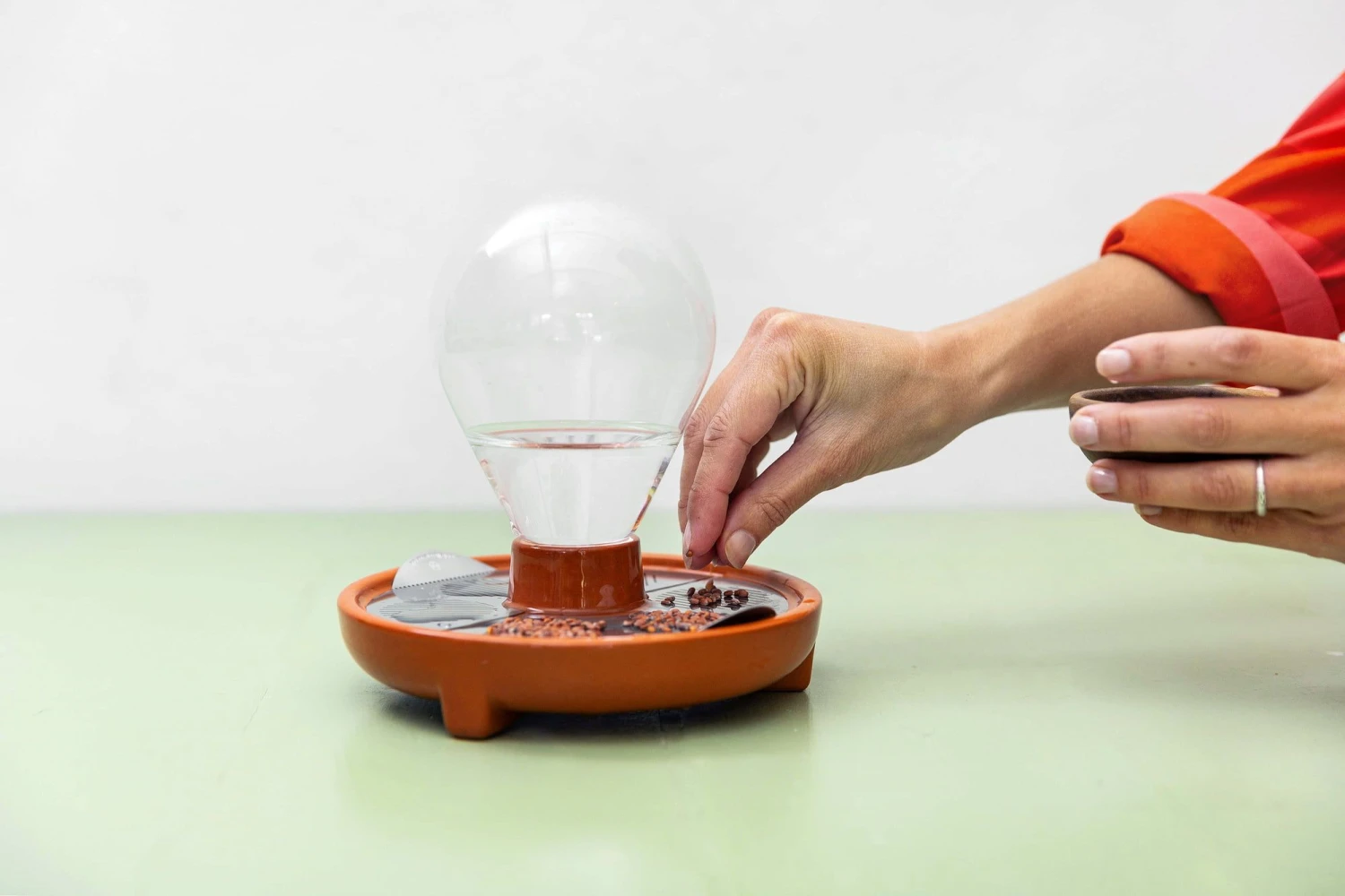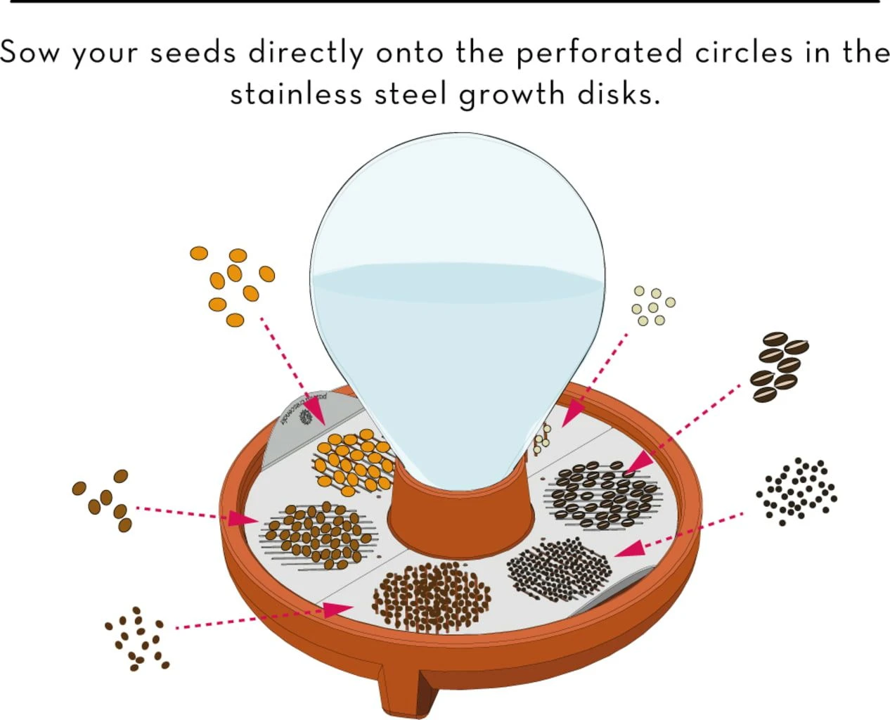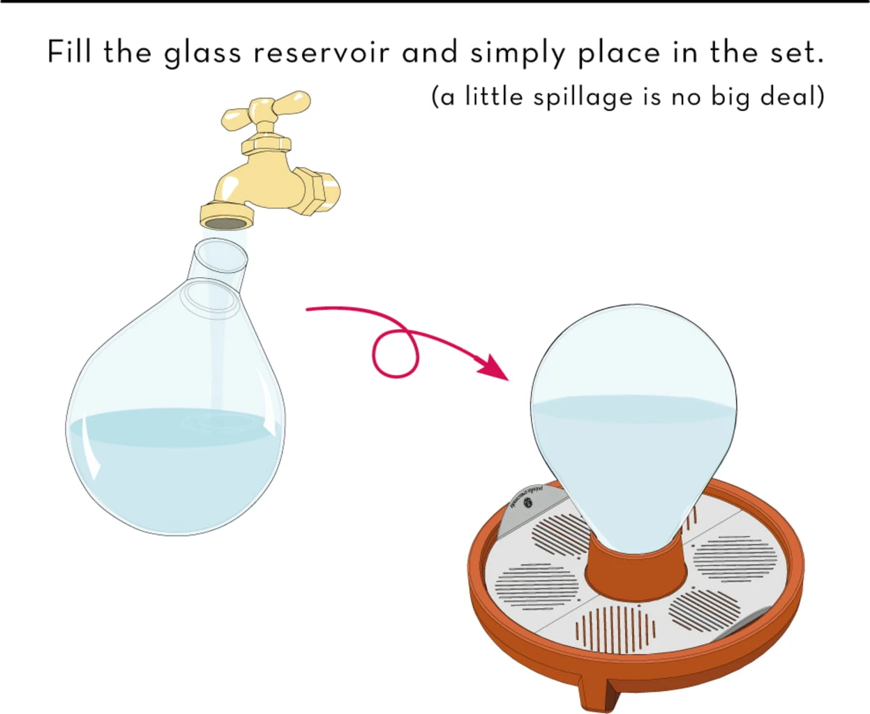 - Befülle den Wassertank und platziere ihn in der Mitte der Keimschale