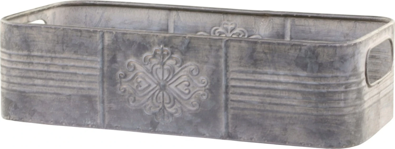 Dieses reich verzierte Pflanz- und Dekogefäß wurde aus robustem Zink gefertigt und bietet genügend Platz zum Verstauen deiner Utensilien. Aber auch Kräuter oder Zierpflanzen lassen sich darin optimal in Szene setzen und werden garantiert zum Blickfang in deinem Zuhause. Sehr praktisch sind zudem die seitlichen Griffe, mit denen du das Gefäß jederzeit hochheben und an einen Ort deiner Wahl stellen kannst.