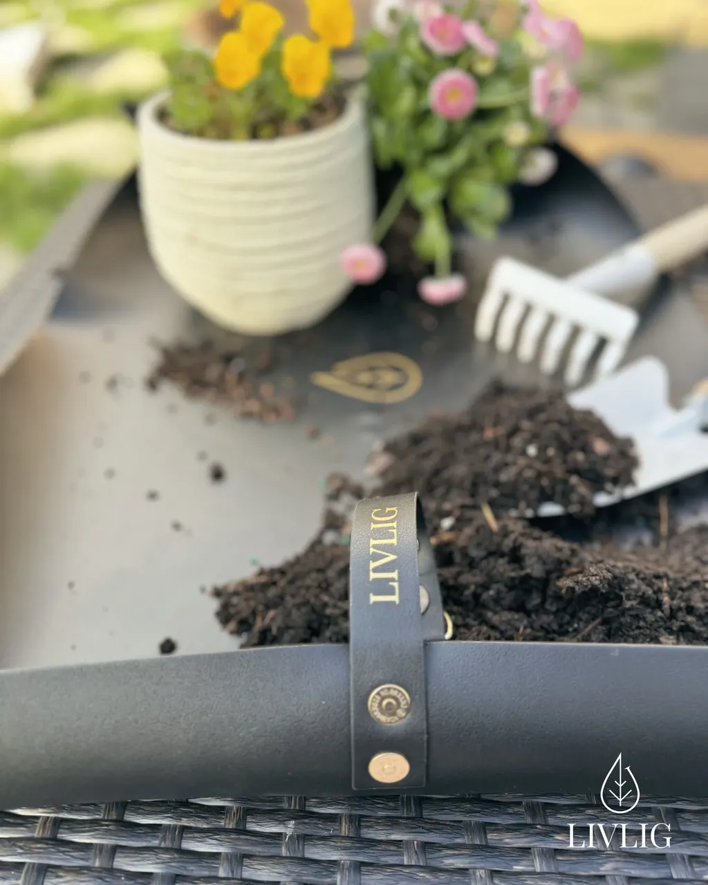 Diese stilvolle Pflanzmatte ist die ideale Unterlage für deine Pflanzarbeiten, ganz gleich ob im Haus, auf dem Balkon oder der Terrasse. Das hochwertige Material aus Kunstleder verfügt über versiegelte Kanten, ist rutschfest und wasserabweisend. Mit den Magneten an den Kanten kann ein erhöhter Rand geschaffen werden, sodass die Umgebung frei von Erde bleibt.