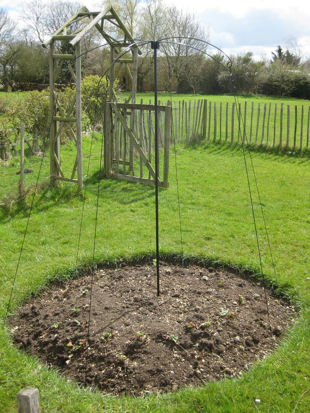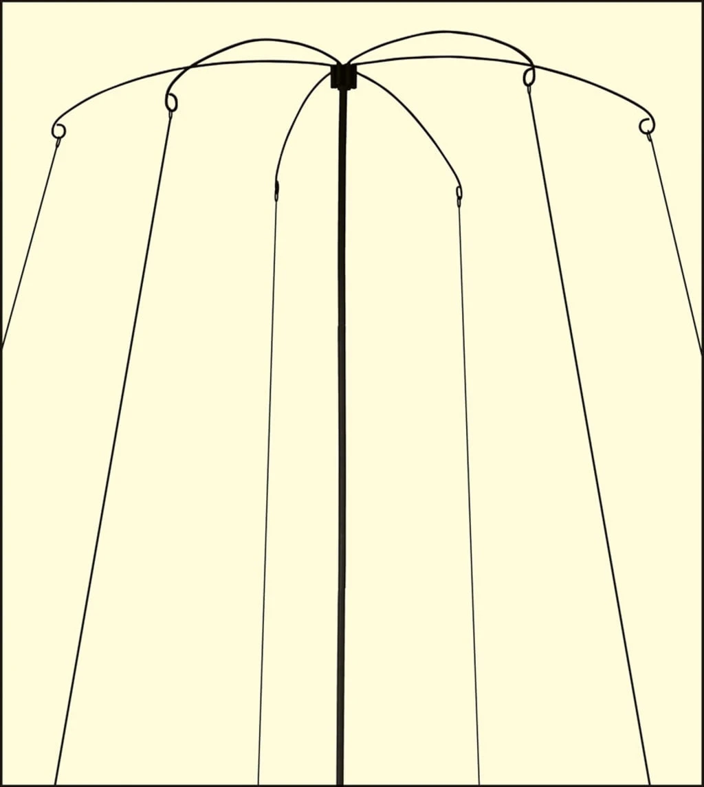 Diese Rankhilfe breitet sich aus wie ein Sonnenschirm und ist eine elegante Hilfe für Ihre rankenden Pflanzen (Erbsen, Bohnen und andere Kletterpflanzen). Die Arme des „Sonnenschirms“ sind so konzipiert, dass sie genug Platz für die Ranker schaffen. Der Lieferumfang umfasst 6 gebogene Arme, 1 Mittelstange einen Erdspieß und 6 verzinkte Stahlheringe.