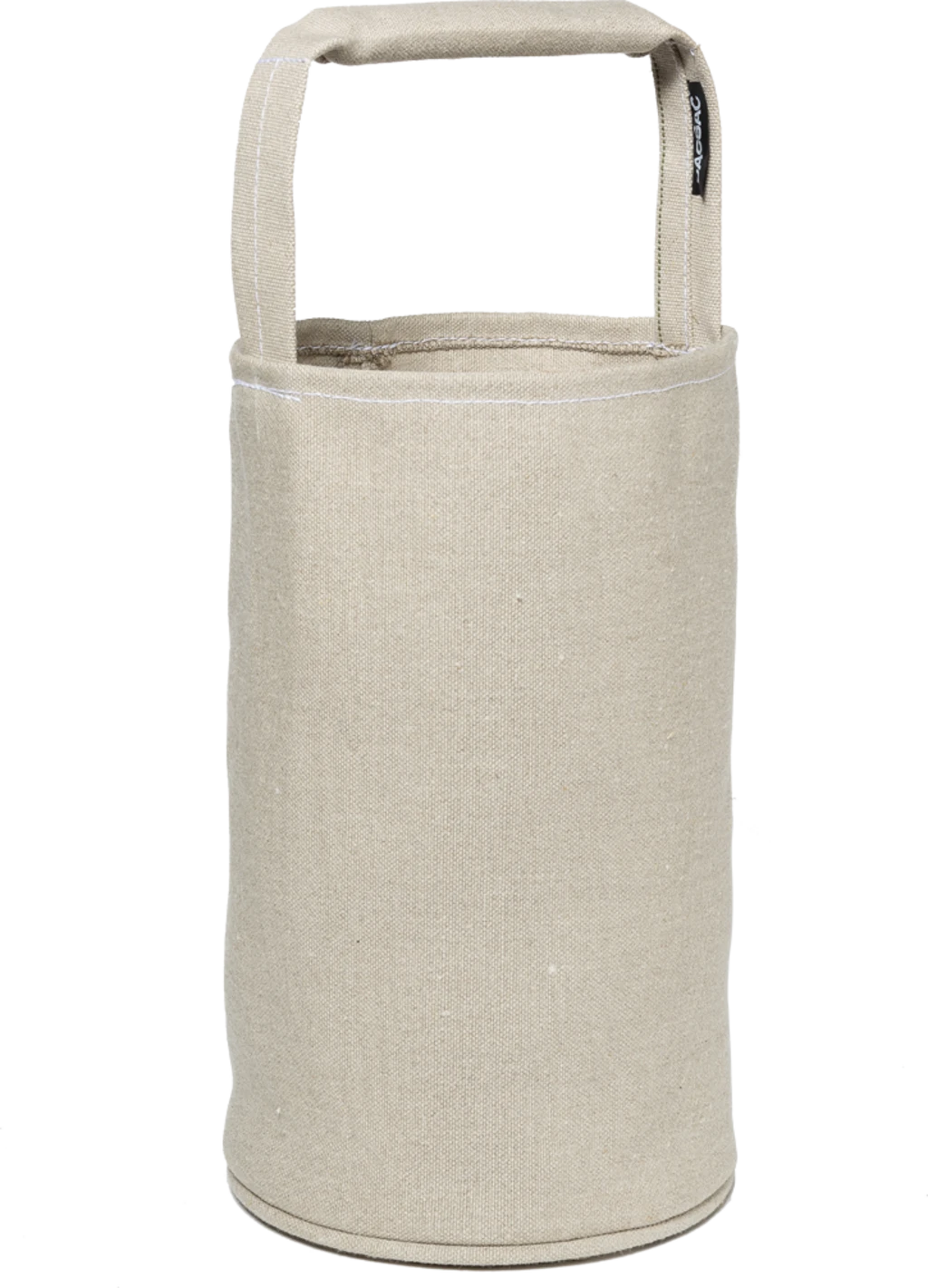 - Den Eimer einfach mit Wasser anfüllen. Bei Kontakt mit Wasser quellen die Leinenfasern auf und der Stoff wird steif und wasserdicht. Die Wasserdichtigkeit nimmt mit der Nutzung zu.
