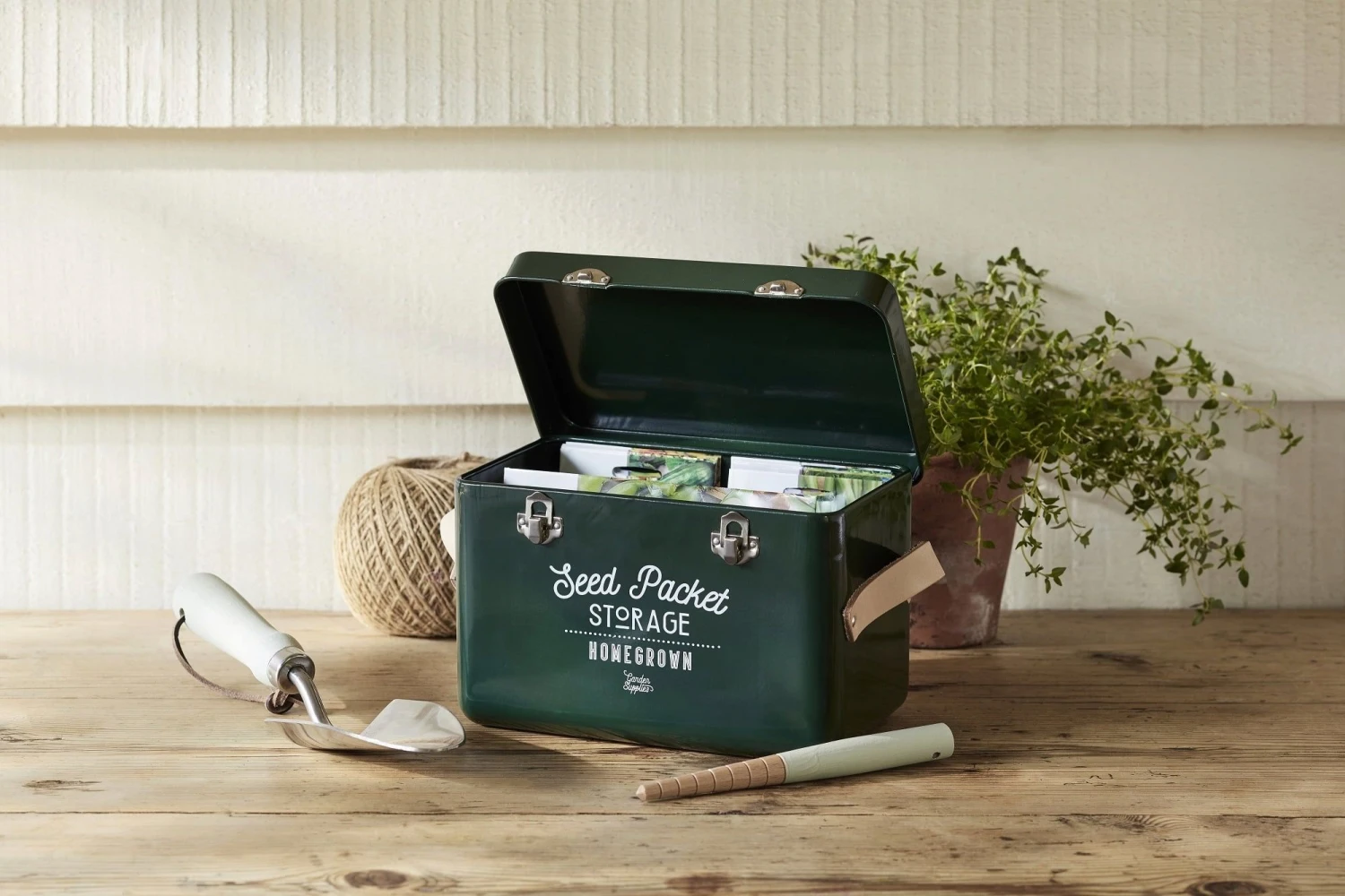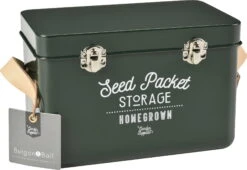Diese hübsche Box ist mit ihren drei Fächern die perfekte Aufbewahrung für dein Saatgut und sorgt dafür, dass du garantiert jedes Samenpäckchen findest. Dabei ist sie aber nicht nur überaus nützlich, sondern auch ein echter Hingucker in jedem Regal. Die eleganten Kurven, die stylische Aufschrift, die seitlich angebrachten Lederhenkel und die frische Farbgebung schenken dieser Box ihren tollen Look und machen sie zum idealen Zuhause für deine Gartenschätze.