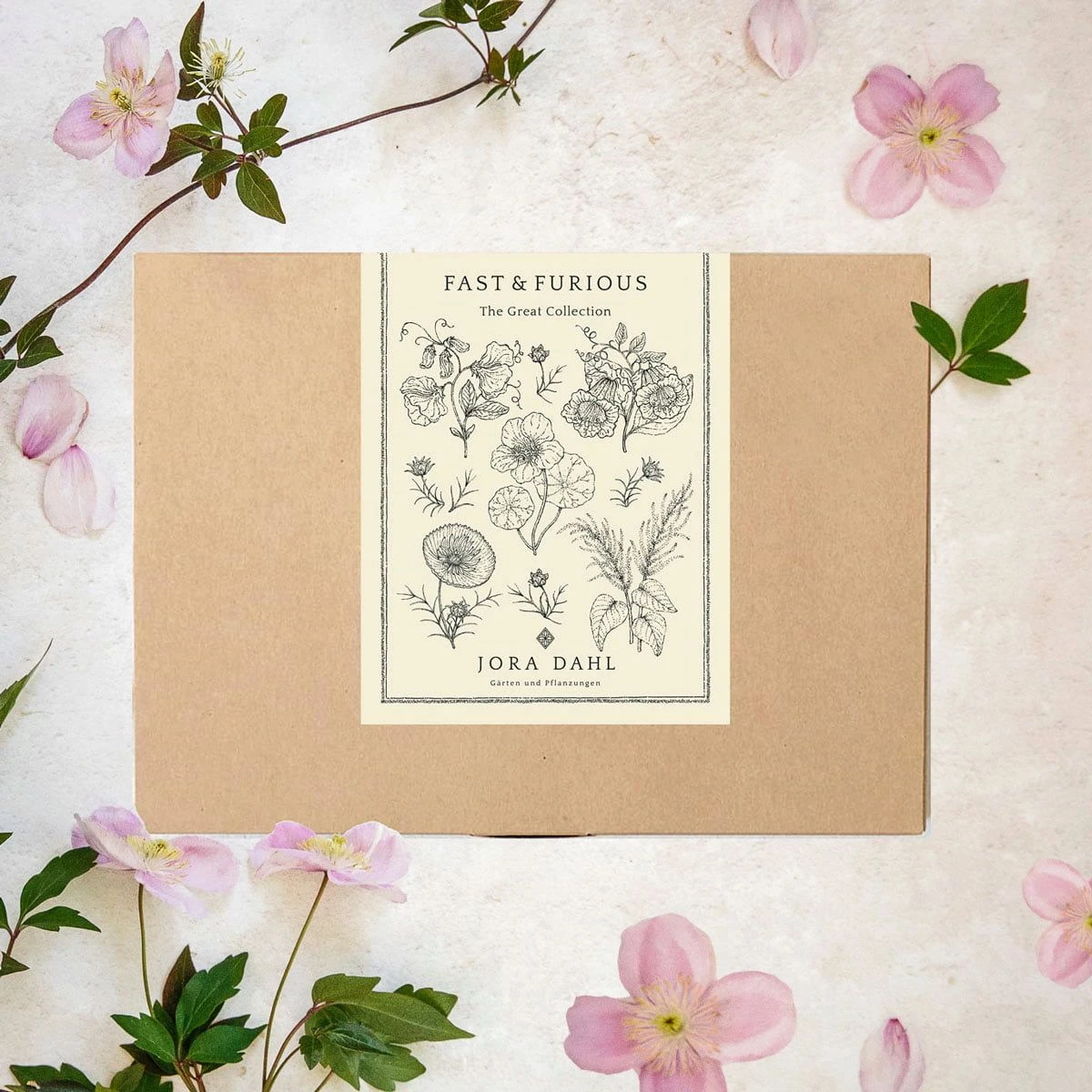 Eine fein aufeinander abgestimmte Kollektion von Jora Dahl, die mit ihrem schnellen Wuchs und ihrem üppigen Blütenflor für Entzückung sorgt. Auch für neue Gärten, die schnell etwas hermachen sollen, ist der Blumen-Mix eine hervorragende Wahl. Die Anzucht ist kinderleicht und garantiert ständig frische Schnittblumen aus dem eigenen Garten, die sich lange in der Vase halten. In der edlen Geschenkbox befinden sich insgesamt acht Sorten, mit denen wundervolle Bouquets kreiert werden können.